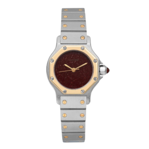 Santos Octagon Yellow Gold & Steel Burgundy Spider Dial 24mm