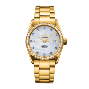 Aqua Terra Yellow Gold Diamond Mother of Pearl Dial 36mm