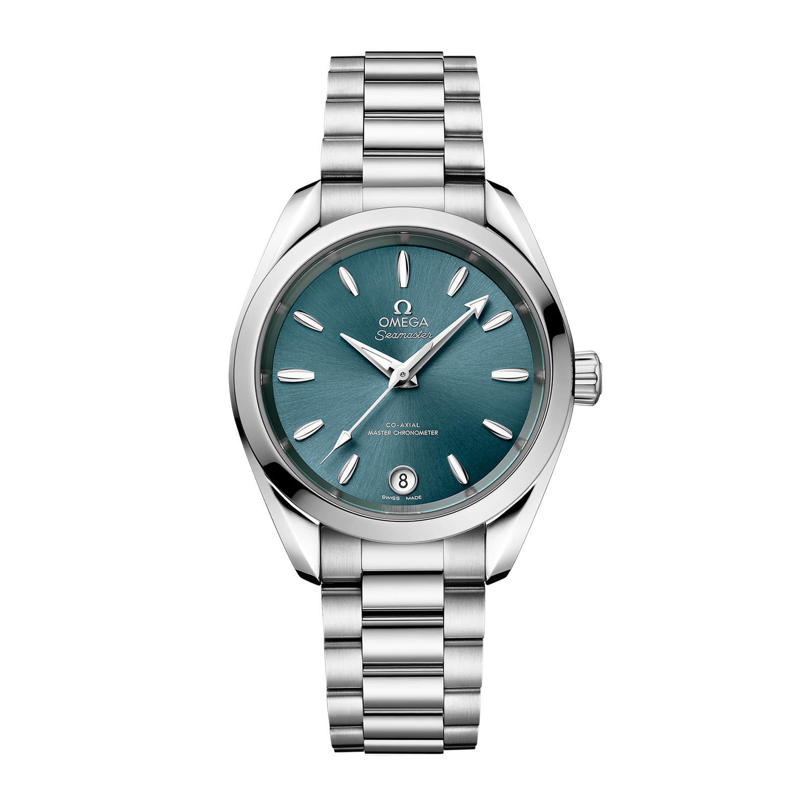 Discover the Omega Aqua Terra Steel Green Dial, ref. 220.10.34.20.10.001. This refined 34mm timepiece combines modern design with robust functionality, featuring a striking green dial that enhances its contemporary appeal. Crafted from stainless steel, the watch is powered by the self-winding Calibre 8800 movement, offering a 55-hour power reserve and precise timekeeping. The dial is adorned with index markers and showcases essential functions for hours, minutes, seconds, and date, all protected by a durable sapphire crystal. Designed for versatility, the Aqua Terra is water-resistant up to 150 meters, making it suitable for both casual and aquatic activities. The stainless steel bracelet, secured with a deployment clasp, adds a comfortable fit to the overall aesthetic. Launched in 2022, the Omega Aqua Terra Steel Green Dial is an ideal choice for those seeking a blend of style and performance in a luxury watch that complements any wardrobe.Read More