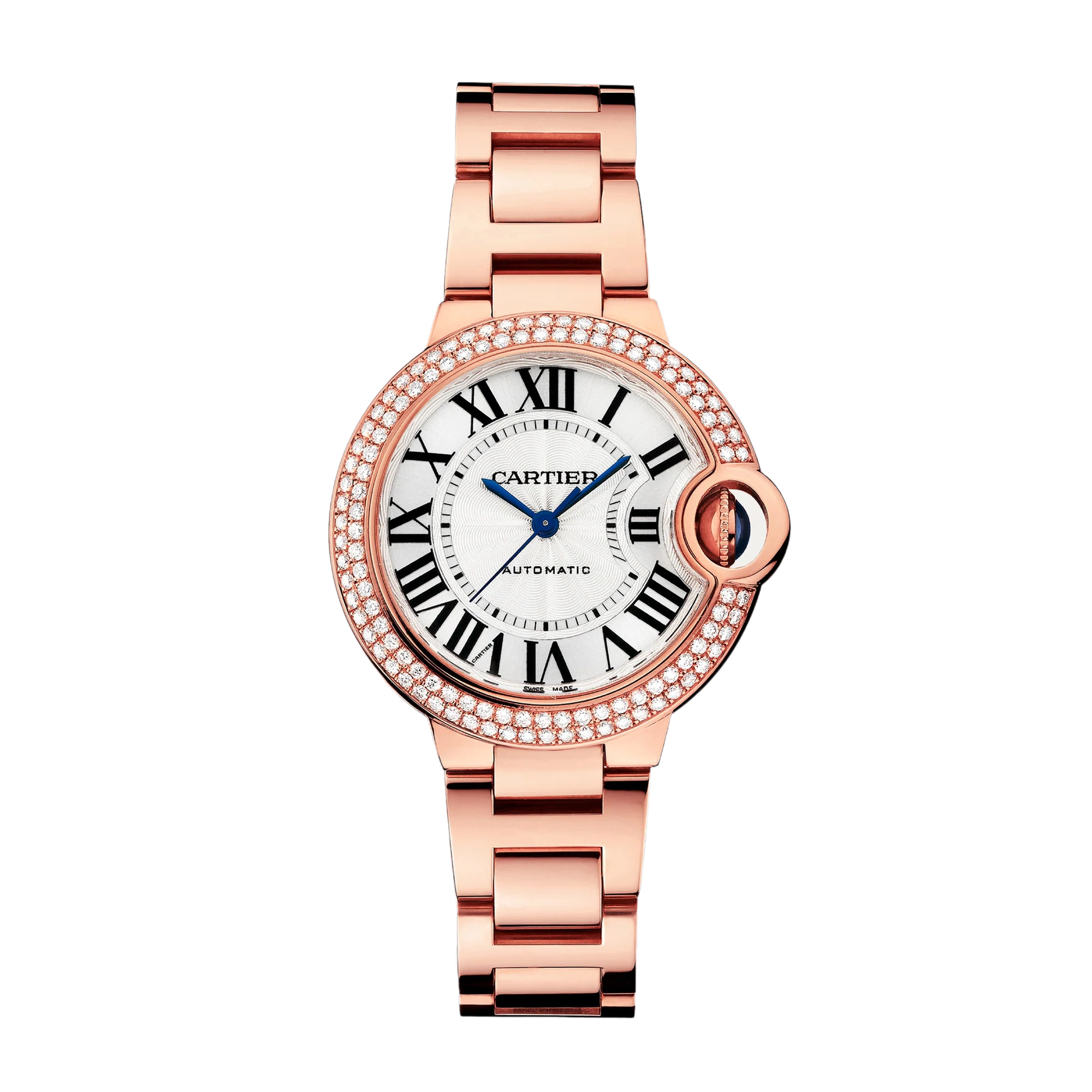 Ballon Bleu de Cartier Rose Gold Diamond Silver Dial 33mm