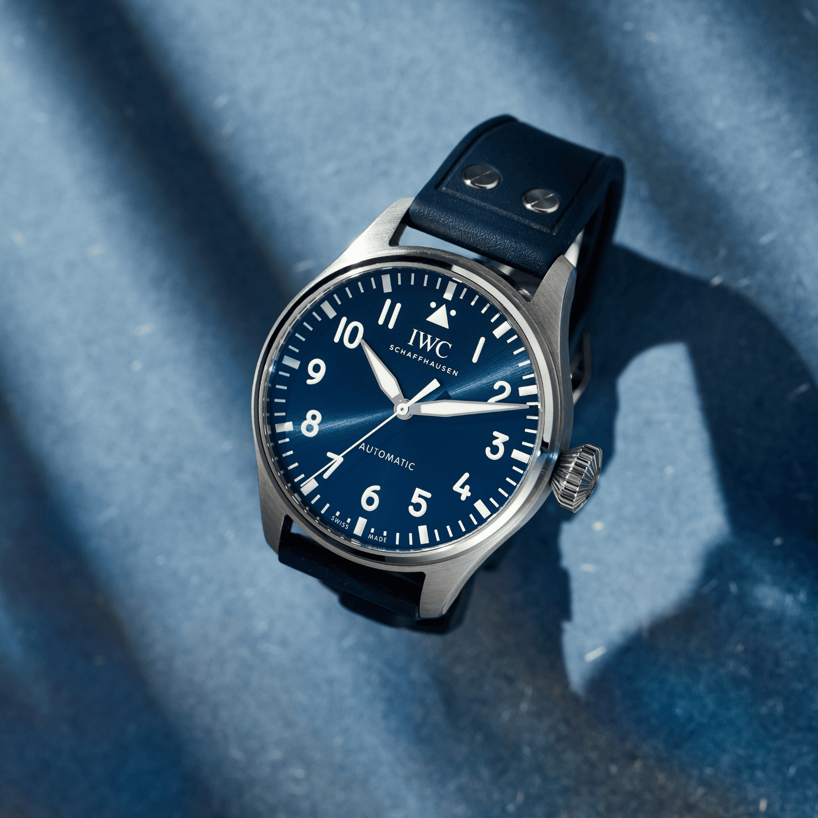 The IWC Big Pilot’s Watch boasts a substantial 43mm stainless steel case, striking the perfect balance between presence and wearability. With a polished and brushed finish, the case features a height of 13.6mm that offers a robust appearance while ensuring comfort on the wrist. The stunning blue dial is complemented by rhodium-plated hands that shine under various lighting conditions and are filled with luminescent material for visibility in the dark. A smooth, polished bezel frames the dial elegantly, while the watch is enhanced by a screw-in crown, which contributes to the watch’s durability and water resistance up to 100 meters. This level of water resistance makes the Big Pilot’s Watch suitable for an array of activities, whether you’re in the cockpit or enjoying a day at the beach.
