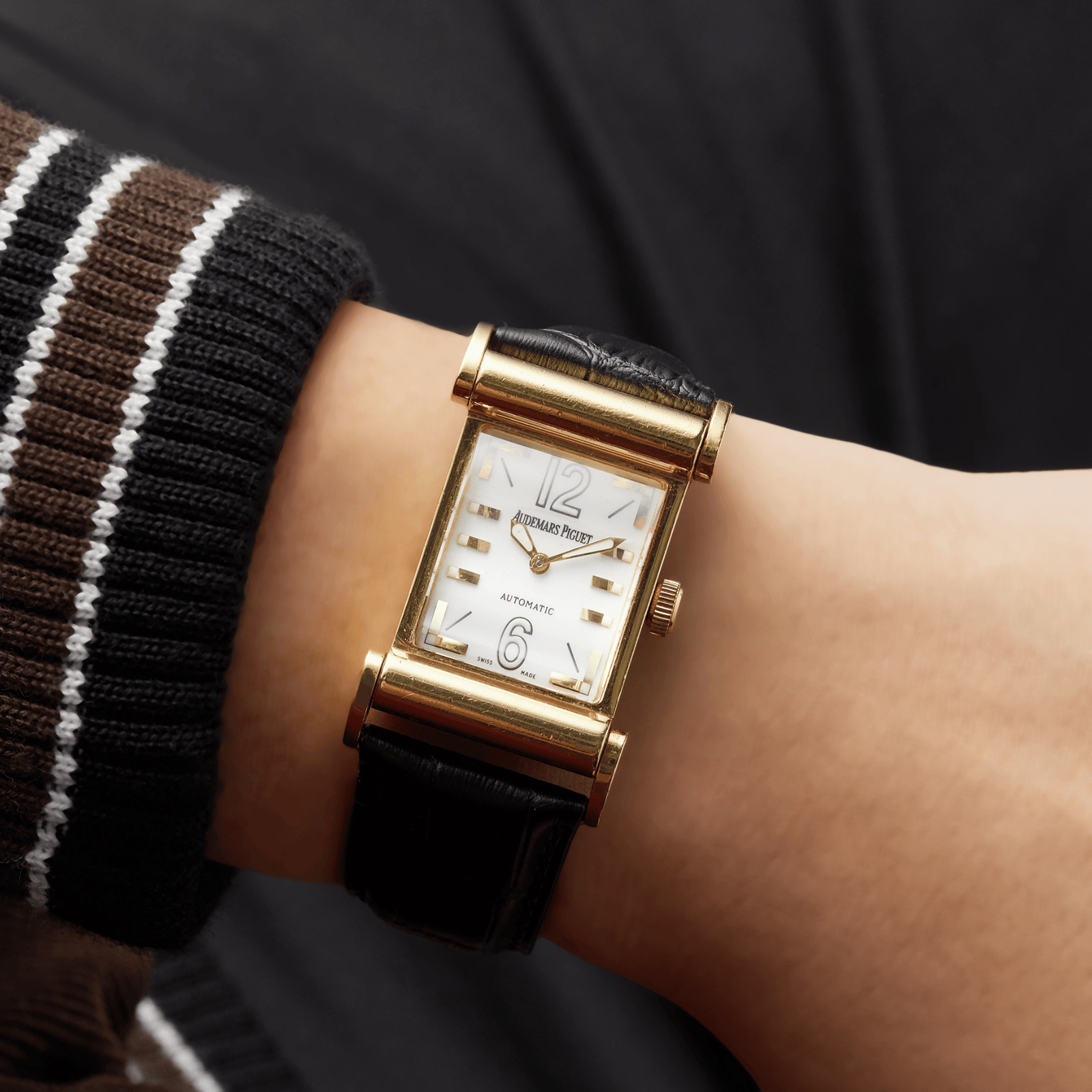 As a renowned Swiss luxury watchmaker, Audemars Piguet is celebrated for its innovative designs and exceptional craftsmanship. The Audemars Piguet Canapé Yellow Gold Silver Dial ref. 15091BA.O.0002CR.01 is a striking representation of the brand’s more formal timepieces. The name “Canapé” is derived from the French word for sofa, and the watch’s design takes clear inspiration from the armrest of an antique, high-end sofa. The movable, scroll-like lugs closely resemble the curved armrest of a classic piece of furniture, providing a unique and comfortable fit on the wrist. This untraditional case design, with its cylindrical and straight-curved lugs, was a departure from the more common watch case shapes when the model was first introduced. The elegant yellow gold case paired with the silver dial creates a sophisticated, dressy aesthetic, making the Canapé well-suited for formal occasions. Through this innovative design, Audemars Piguet has seamlessly blended the luxurious comfort of a fine sofa with the precision timekeeping expected from this prestigious watchmaking brand.
