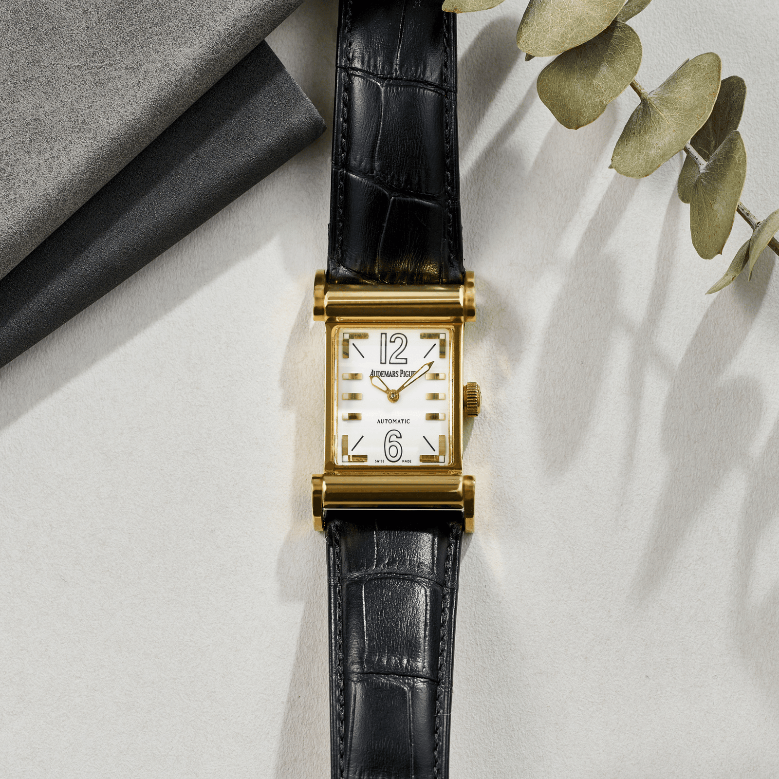 The Audemars Piguet Canapé Yellow Gold Silver Dial ref. 15091BA.O.0002CR.01 is a captivating timepiece that exemplifies the brand’s exceptional attention to detail and timeless elegance. The rectangular case, measuring 24mm x 38mm, features a harmonious blend of brushed and polished surfaces, creating a sophisticated, multidimensional appearance. The scroll-like lugs, a distinctive design element inspired by the armrests of a classic sofa, offer a comfortable and ergonomic fit on the wrist. The striking white dial is adorned with applied gilt baton hour markers, luminous tips, and luminous Arabic numeral quarters, providing exceptional legibility. The elegant gilt sword hands with luminous inserts glide effortlessly across the dial, ensuring precise time-telling. Powered by the self-winding Calibre AP 2140 movement, this Canapé model boasts a 40-hour power reserve, ensuring reliable and consistent performance. Completing the refined aesthetic, the Canapé is fitted with a black Audemars Piguet alligator leather strap, secured by a signed 18K gold folding clasp. This harmonious combination of materials and design elements elevates the Canapé to a true statement of Audemars Piguet’s unparalleled craftsmanship and timeless elegance.