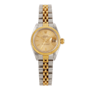 The Rolex Datejust Rose Gold & Steel Jubilee Mother of Pearl Dial 31mm Ref. 278271-0026 combines Rolex’s signature materials and precision with a unique mother-of-pearl diamond-set dial. The 31mm Oystersteel and Everose gold case features a fluted bezel, a hallmark of the Datejust line. The natural white mother-of-pearl dial is set with diamonds in 18 ct gold settings, ensuring each piece is one-of-a-kind. Powered by the self-winding Rolex Calibre 2236, the watch delivers chronometer-certified accuracy and a 55-hour power reserve. Waterproof to 100 meters, the model includes a screw-down crown and scratch-resistant sapphire crystal. The Jubilee bracelet, crafted from both Everose gold and steel, offers comfort and durability with its five-piece link construction and folding clasp. This reference stands out for its Rolesor construction, exclusive dial, and advanced in-house movement, making it a distinctive addition to the Datejust family.Read More