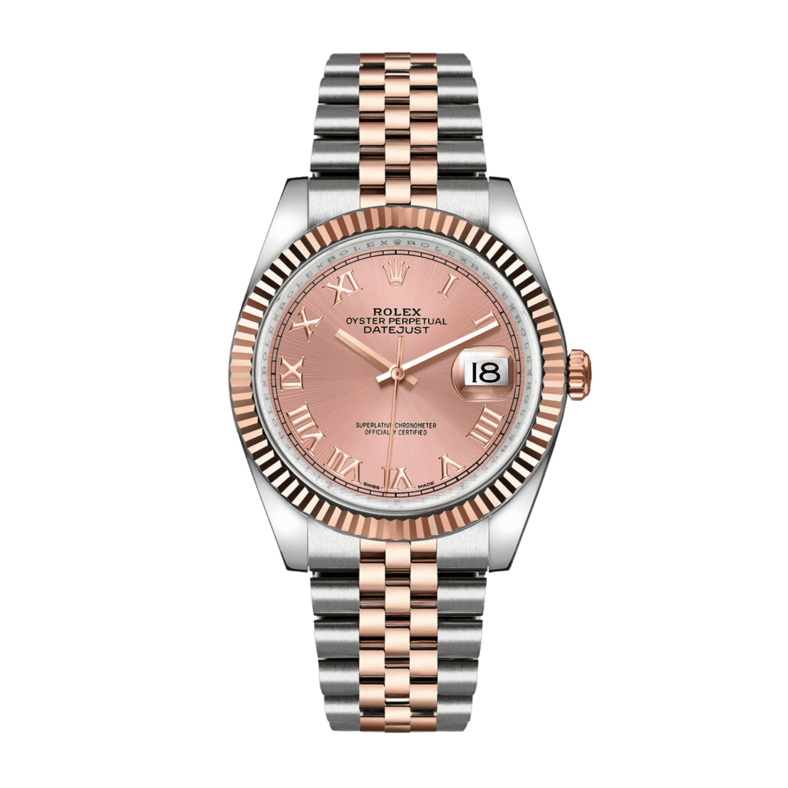 Introducing the Rolex Datejust Rose Gold & Steel Jubilee Pink Dial 36mm ref. 116231-0089, a sophisticated blend of materials and design. Launched in 2018, this watch features a 36mm stainless steel case with a striking fluted bezel crafted from rose gold, adding a touch of luxury. The pink dial showcases Roman numeral hour markers, enhancing readability while maintaining elegance. Powered by the self-winding Calibre 3135 movement, it provides a reliable 48-hour power reserve and chronometer precision. The Jubilee bracelet features a combination of rose gold and stainless steel, with the middle links crafted from rose gold for a distinctive look. The folding clasp ensures a secure fit, while the sapphire crystal protects the dial from scratches. With a water resistance of up to 100 meters, the Datejust ref. 116231-0089 is suitable for both daily wear and special occasions. This watch perfectly balances style and functionality, making it a valuable addition to any collection.Read More