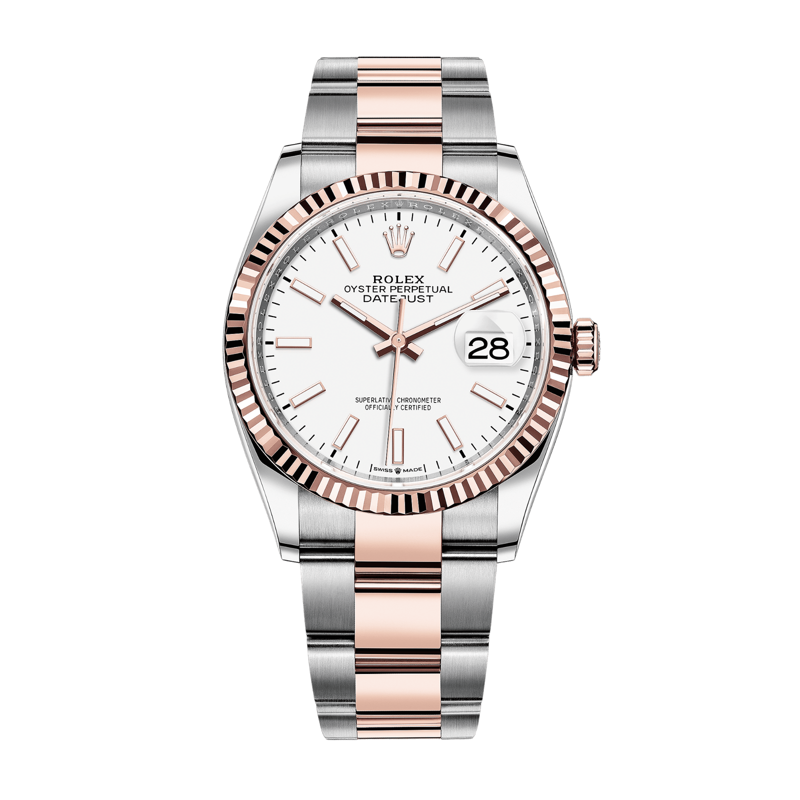 The Rolex Datejust Rose Gold & Steel White Dial 36mm Ref. 126231-0018 is a refined timepiece that blends classic design with modern precision. Featuring a 36mm case crafted from Everose Rolesor, a combination of Oystersteel and 18K Everose gold, this watch is distinguished by its signature fluted bezel in 18K Everose gold. The white lacquered dial provides a clean, sophisticated aesthetic, complemented by luminous index hour markers for excellent readability. The scratch-resistant sapphire crystal and the iconic Cyclops lens over the date at 3 o’clock ensure practicality and durability. Powered by the advanced self-winding Calibre 3235, this watch offers a 70-hour power reserve and is certified as a Superlative Chronometer for accuracy and reliability. The robust Oyster bracelet, equipped with an Oysterclasp and Easylink extension, ensures a secure and comfortable fit. Water-resistant to 100 meters, the Ref. 126231-0018 combines versatility and performance for daily wear.Read More