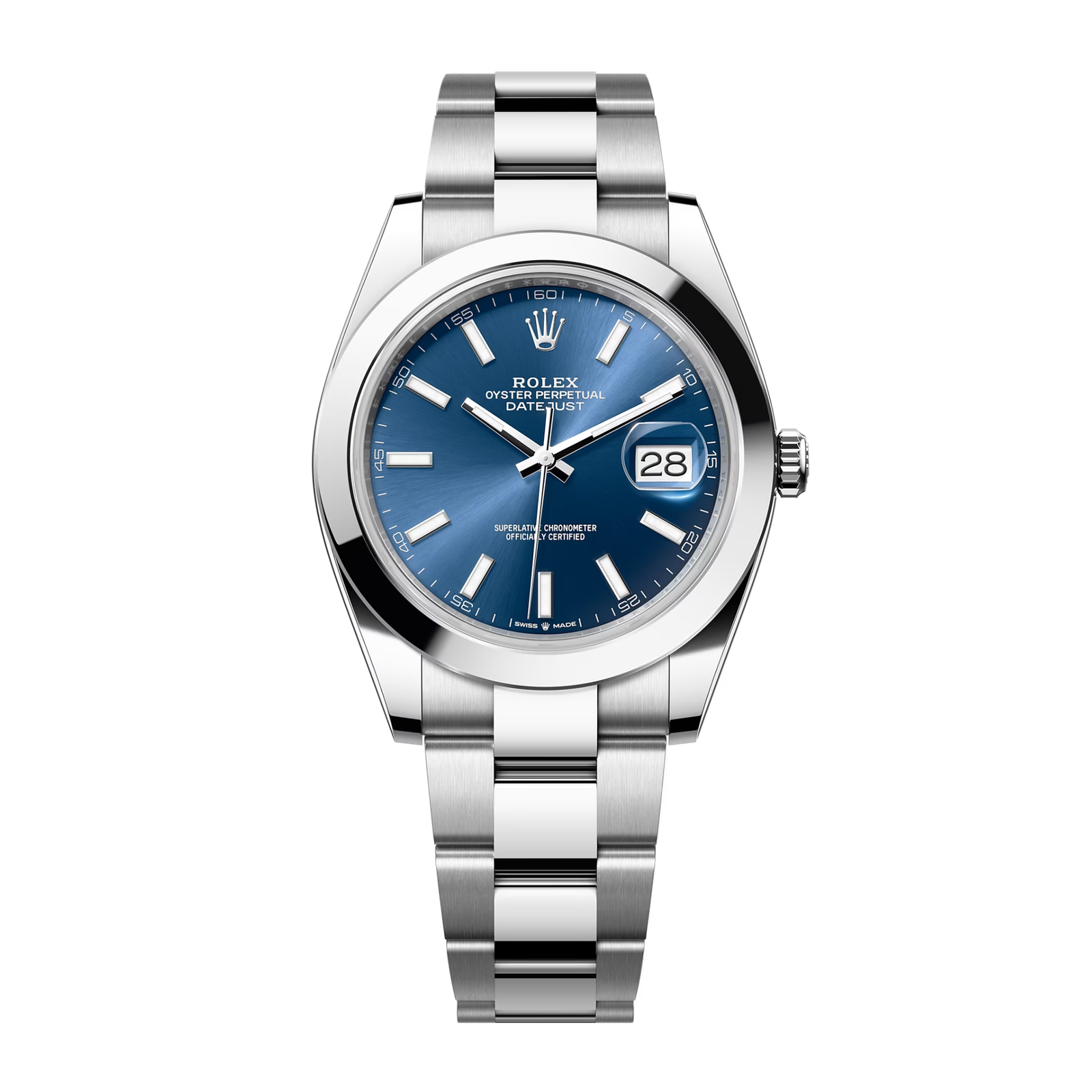 Discover the Rolex Datejust 41 ref. 126300-0001 in Oystersteel with a striking bright blue dial. This 41mm watch features a sunray-finished dial that creates a dynamic play of light, enhancing visibility and elegance. The luminescent index markers ensure clear readability in any lighting condition. Crafted from Rolex’s proprietary Oystersteel, known for its exceptional resistance to corrosion, this timepiece maintains its polished appearance even in challenging environments. The robust Oyster bracelet combines practicality and comfort, featuring an Oysterclasp and an Easylink comfort extension link for a customizable fit. Powered by the self-winding Caliber 3235 movement, the Datejust offers an impressive 70-hour power reserve and is a certified chronometer, ensuring accurate timekeeping. With a water resistance of up to 100 meters, this watch is suitable for both formal and casual settings. The Rolex Datejust 41 is an ideal choice for those who appreciate quality craftsmanship and timeless design.Read More
