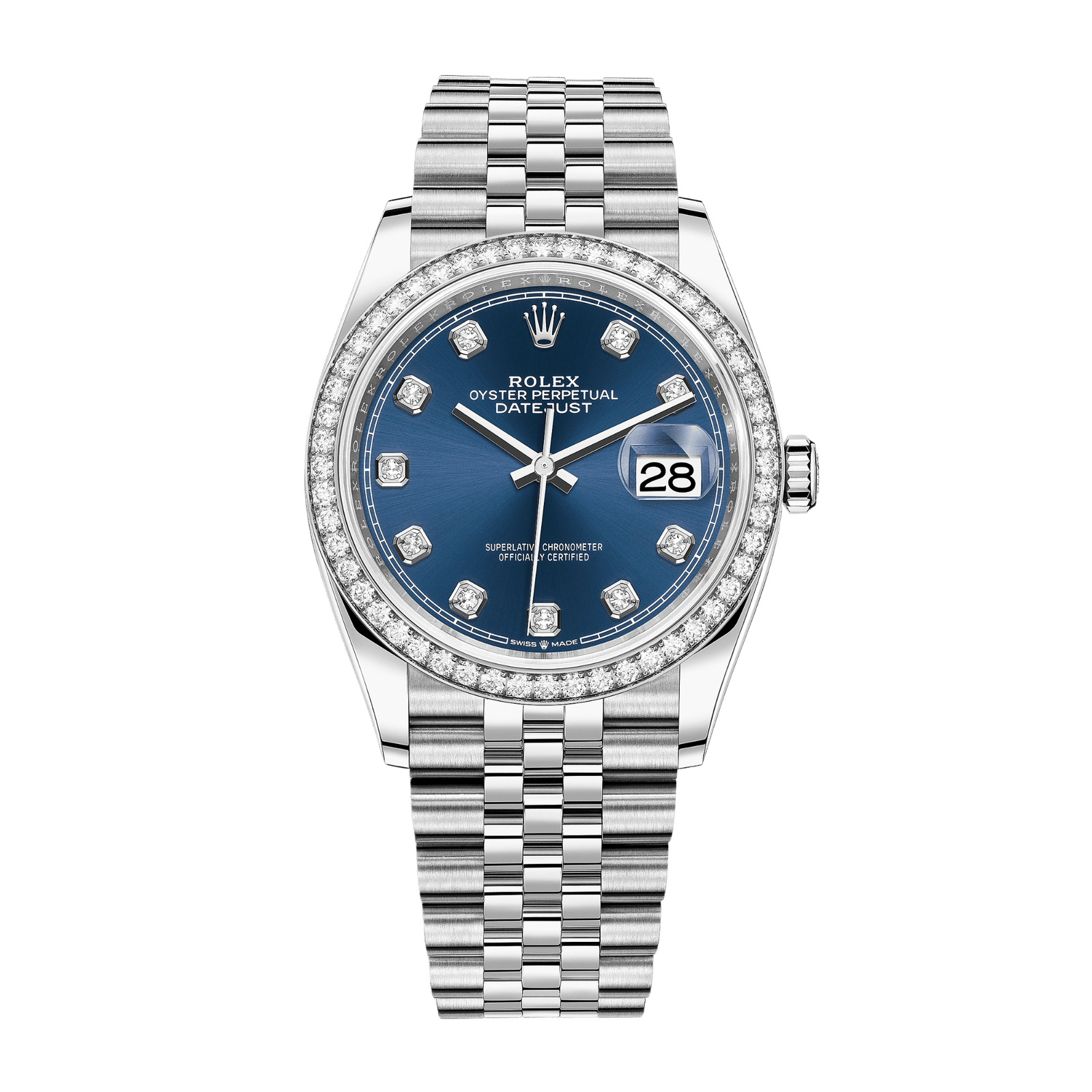 The Rolex Datejust Steel Diamond Jubilee Blue Dial 36mm Ref. 126284RBR-0029 is a masterful blend of precision engineering and timeless design, featuring a 36mm Oystersteel and white gold case paired with Rolex’s iconic Jubilee bracelet for optimal comfort and elegance. Its vibrant blue sunray-finished dial is set with diamond hour markers in 18 kt gold, offering both durability and refinement. The white gold bezel, meticulously adorned with expertly placed diamonds, showcases Rolex’s unparalleled gem-setting craftsmanship. At its heart is the self-winding Calibre 3235 movement, delivering a 70-hour power reserve and COSC-certified chronometer accuracy. With a scratch-resistant sapphire crystal and Twinlock double waterproof system, this watch offers an impressive 100 meters of water resistance. A testament to Rolex’s White Rolesor design, a harmonious combination of gold and steel. this Datejust 36 is a sophisticated statement of innovation and enduring quality.Read More