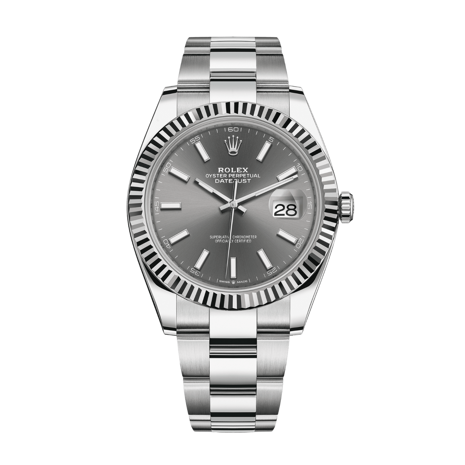 The Rolex Datejust Steel Grey Dial 41mm ref. 126334-0013 is the perfect blend of timeless design and modern precision. Housed in a robust 41mm Oystersteel case, this timepiece features a striking grey dial with sunray finishing, accented by white gold hour markers and hands with Chromalight luminescence for enhanced readability. The fluted 18K white gold bezel adds a refined touch, emphasising the Datejust’s iconic aesthetic. Equipped with the Rolex Calibre 3235, a self-winding mechanical movement, it offers outstanding precision, reliability, and an impressive 70-hour power reserve. The Cyclops lens magnifies the date at 3 o’clock for easy viewing, while the Twinlock crown ensures water resistance up to 100 meters. The Oyster bracelet, crafted from Oystersteel, combines brushed outer links with polished centre links for durability and elegance, secured by the signature Oysterclasp with Easylink adjustment. Ideal for both formal and casual settings, the Datejust 41 ref. 126334-0013 exemplifies Rolex’s legacy of innovation and enduring style.Read More