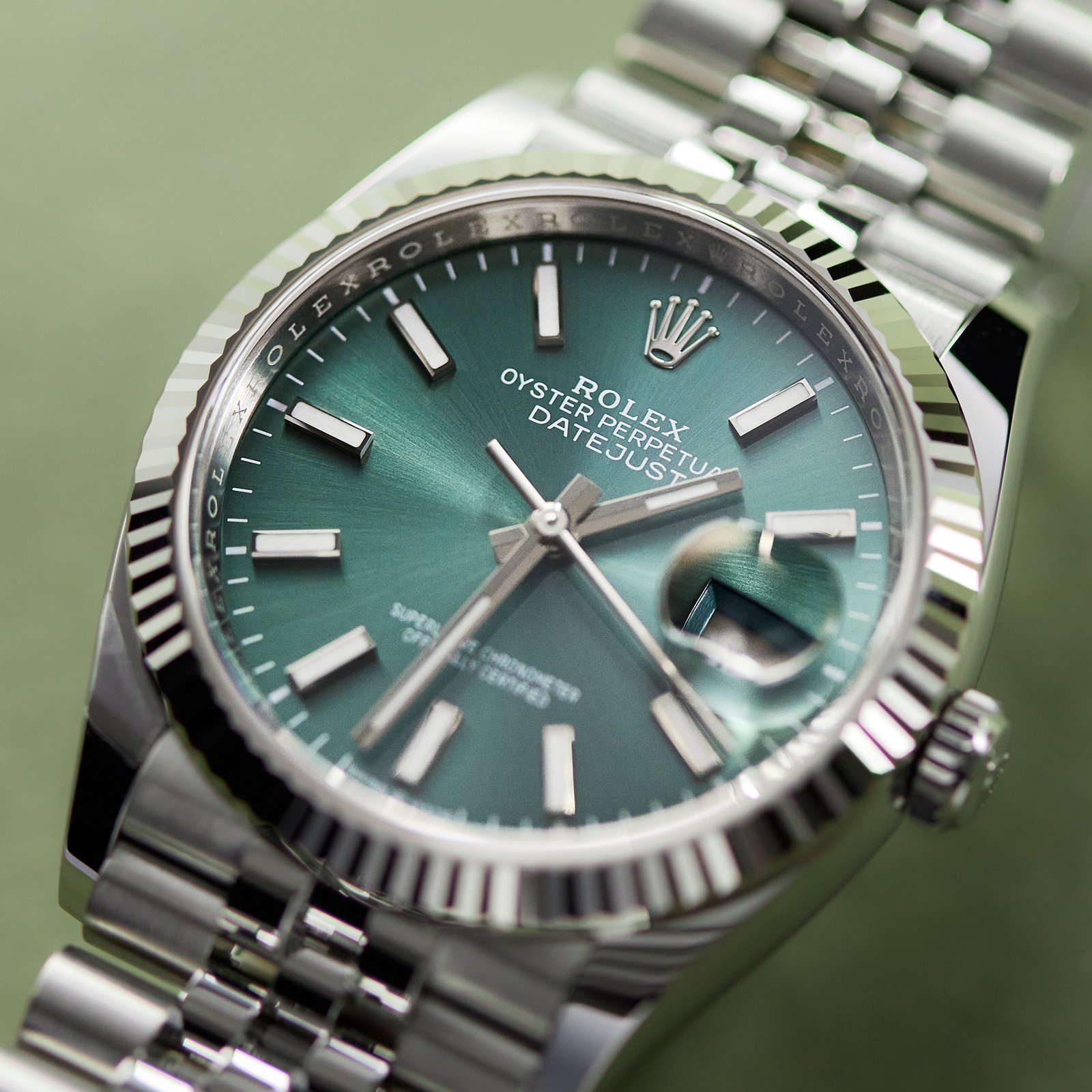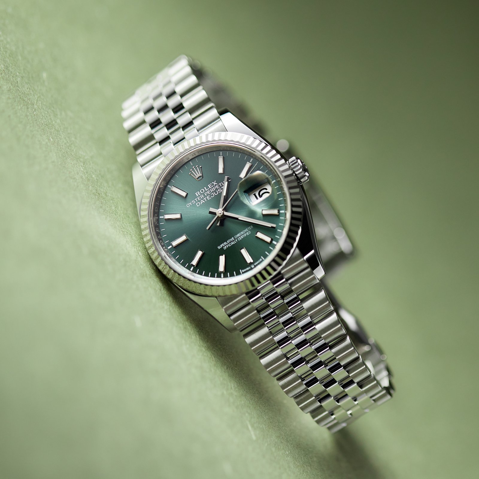 The Rolex Datejust 36 Stainless Steel Jubilee Green Dial ref. 126234-0051 is a stunning timepiece that effortlessly combines classic elegance with modern sensibilities. Meticulously fashioned from premium-grade materials, the case and Jubilee bracelet are engineered to withstand the test of time while maintaining their impeccable appearance. The dial’s striking green hue exudes a sense of dynamic vitality and sophistication, accentuated by the watch’s luminescent hands and hour markers that ensure effortless legibility. Driven by caliber 3235, the timepiece’s exceptional precision and reliability are unrivaled. With its eye-catching green dial and luxurious white gold and stainless steel construction, this watch is a true work of art, It is a watch that you’ll treasure for years to come.