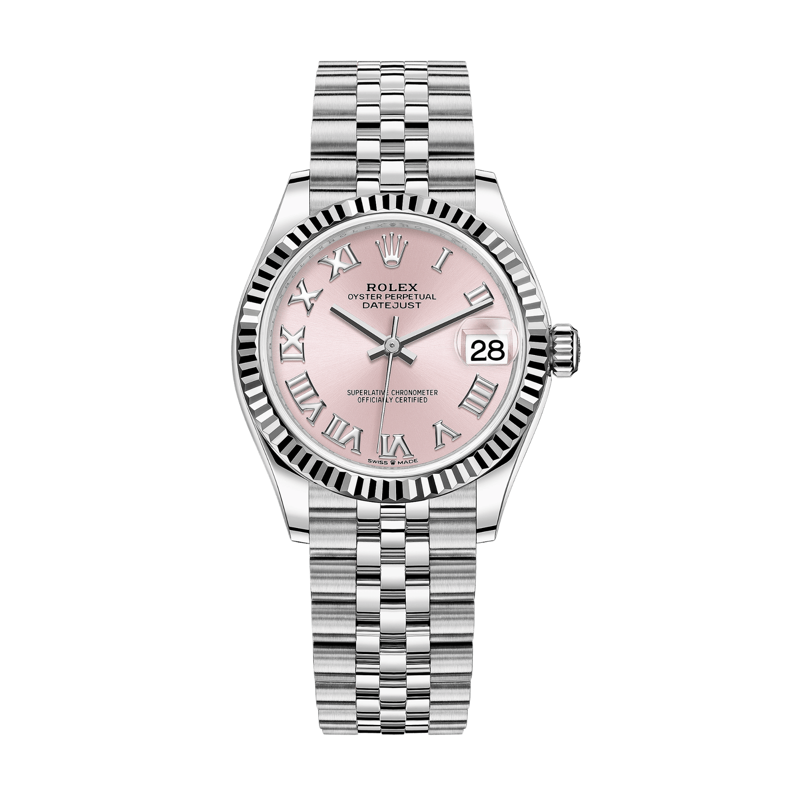 The Rolex Datejust Steel Jubilee Pink Dial 31mm Ref. 278274-0020 combines timeless craftsmanship with refined design, making it a standout in the Oyster Perpetual collection. This model features a 31mm Oystersteel case with a white gold fluted bezel, a signature Rolex element that highlights both form and function. The pink sunray-finished dial, adorned with Roman numerals, achieves a subtle glow through meticulous brushing techniques, ensuring dynamic light reflections with every wrist movement. Powered by the self-winding Calibre 2236, this chronometer-certified movement offers a reliable 55-hour power reserve and precise timekeeping. The Jubilee bracelet, designed for both comfort and elegance, is crafted from stainless steel and secured with a folding clasp for a seamless fit. With its robust construction, 100-meter water resistance, and classic aesthetic, the Ref. 278274-0020 is a versatile choice for those who appreciate understated luxury paired with mechanical excellence.Read More
