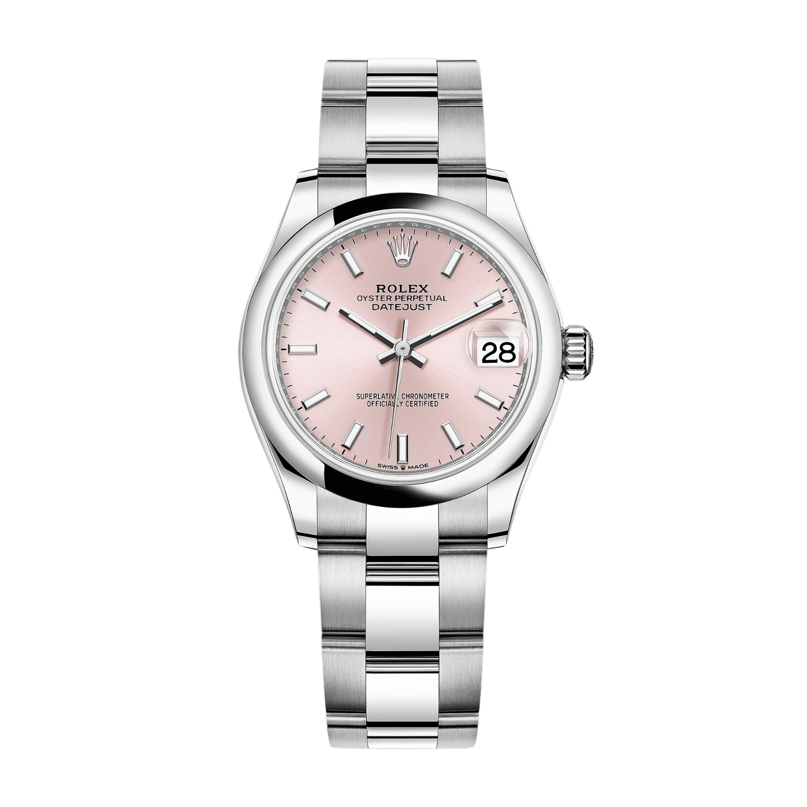 Experience the Rolex Datejust Steel Pink Dial 31mm, ref. 278240-0007. This elegant timepiece features a striking pink dial with a sunray finish, creating delicate light reflections that enhance its visual appeal. Crafted from Oystersteel, a highly corrosion-resistant material, the watch ensures durability and maintains its pristine finish even in challenging environments. The 31mm stainless steel case is complemented by a stainless steel bezel and a scratch-resistant sapphire crystal. The Oyster bracelet combines form and function, featuring a robust design for comfort and equipped with an Oysterclasp and Easylink extension link for a perfect fit. Powered by the self-winding Caliber 2236 movement, it boasts a 55-hour power reserve and is a certified chronometer for precision timekeeping. With water resistance up to 100 meters, the Rolex Datejust ref. 278240-0007 is a versatile and stylish choice for any occasion.Read More