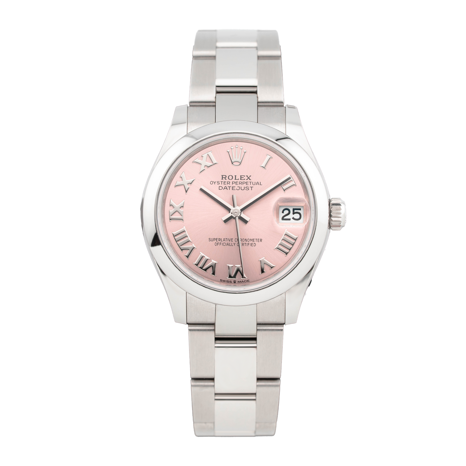 Elevate your style with the captivating Rolex Datejust 31 in Oystersteel, featuring a stunning pink dial that exudes timeless elegance. This sophisticated timepiece showcases Rolex’s exceptional craftsmanship and attention to detail, making it the perfect accessory for any occasion. The delicate pink dial, created using Rolex’s masterful sunray finishing technique, reflects light beautifully, creating a subtle glow that captivates the eye. The Roman numeral hour markers add a touch of classic charm, while the stainless steel Oystersteel case ensures durability and corrosion resistance, making this watch a reliable companion for everyday wear. Complementing the refined dial, the Oyster bracelet seamlessly combines form and function, offering a comfortable and secure fit. Equipped with Rolex’s exclusive Easylink comfort extension system, the bracelet can be easily adjusted to provide a customized fit, ensuring all-day comfort and versatility. Powered by the self-winding Calibre 2236 movement, the Rolex Datejust 31 in Oystersteel with a pink dial delivers reliable and precise timekeeping, making it a versatile choice for a wide range of scenarios, from formal events to casual outings. Whether you’re dressing up for a special occasion or seeking a sophisticated everyday accessory, the Rolex Datejust 31 in Oystersteel with a pink dial is the perfect timepiece to elevate your style and make a lasting impression.Read More