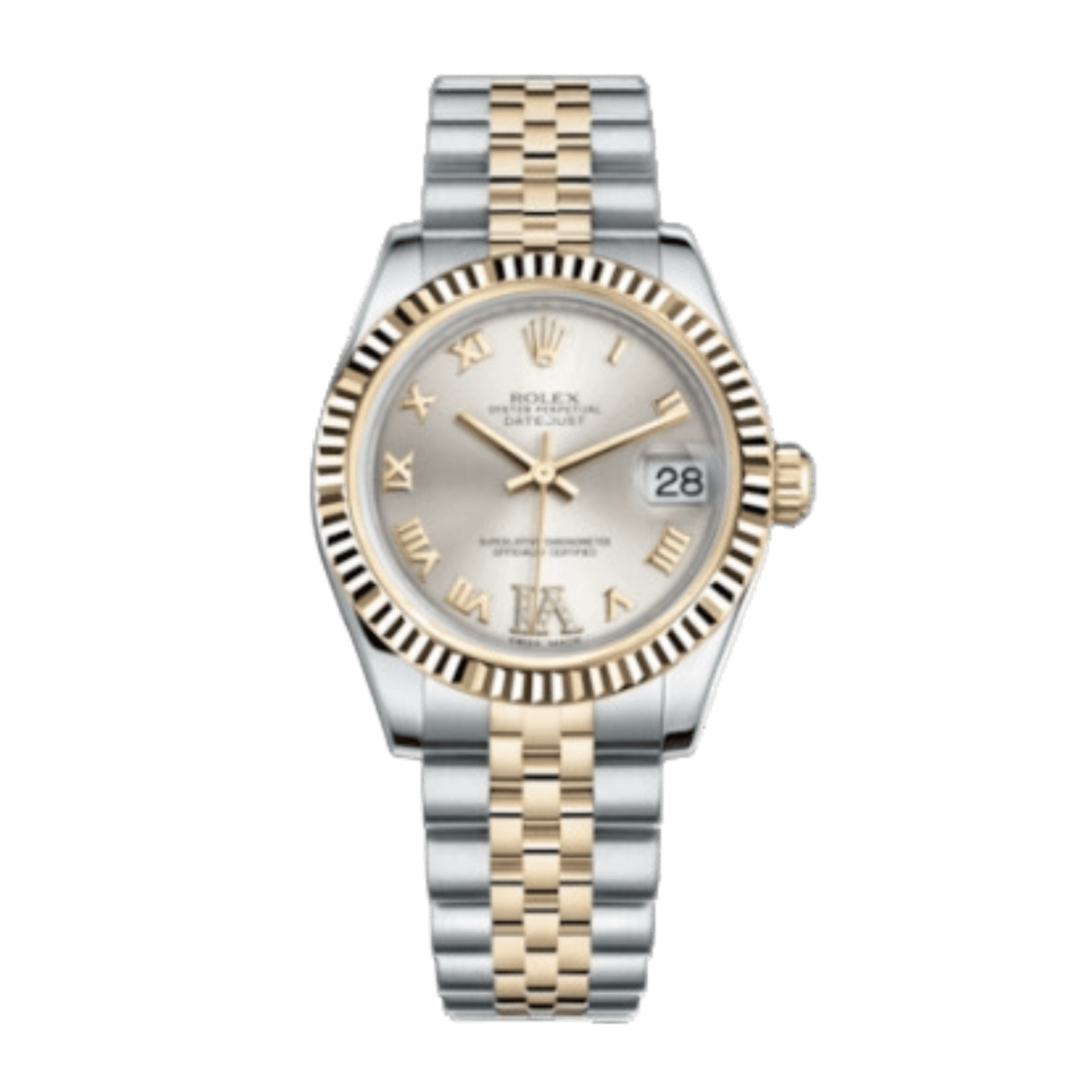Discover the Rolex Datejust 31, a sophisticated blend of style and precision. This refined timepiece features a 31 mm stainless steel case accented by a yellow gold bezel, creating a striking contrast. The silver dial is adorned with elegant Roman numeral hour markers, enhancing readability and sophistication. Powered by the self-winding Caliber 2235 movement, this watch offers a reliable 48-hour power reserve and is chronometer certified for accuracy. It also features a convenient date function, making it a practical choice for daily wear. The luxurious Jubilee bracelet combines stainless steel and yellow gold, providing both comfort and a classic aesthetic. With water resistance up to 100 meters, this watch is versatile enough for various occasions. The Rolex Datejust ref. 178273-0091 is an ideal choice for those who appreciate the perfect balance of elegance and functionality in their watch collection.Read More