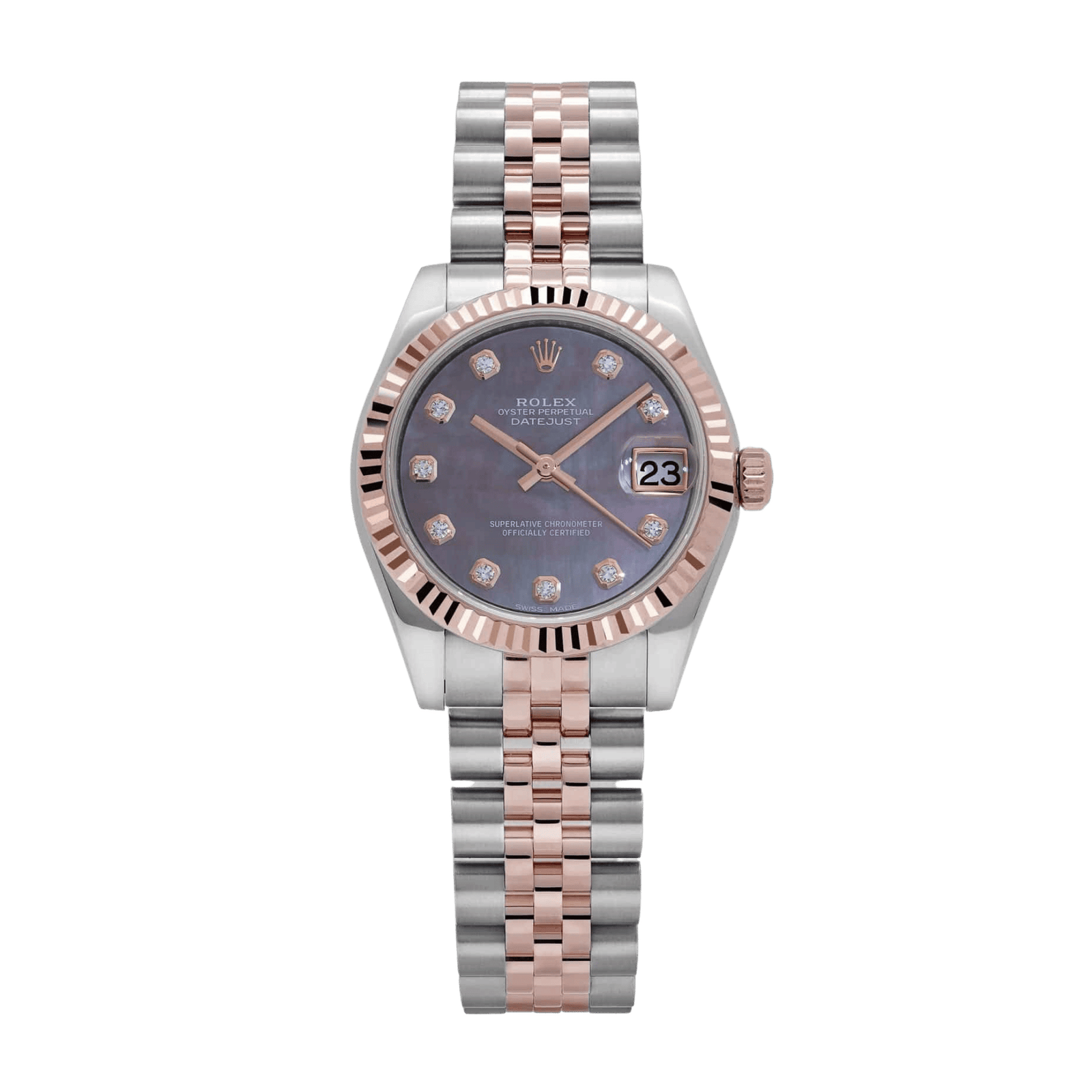 Be the first to review “Datjuest Rose Gold & Steel Black Mother of Pearl Dial 31mm” Cancel reply