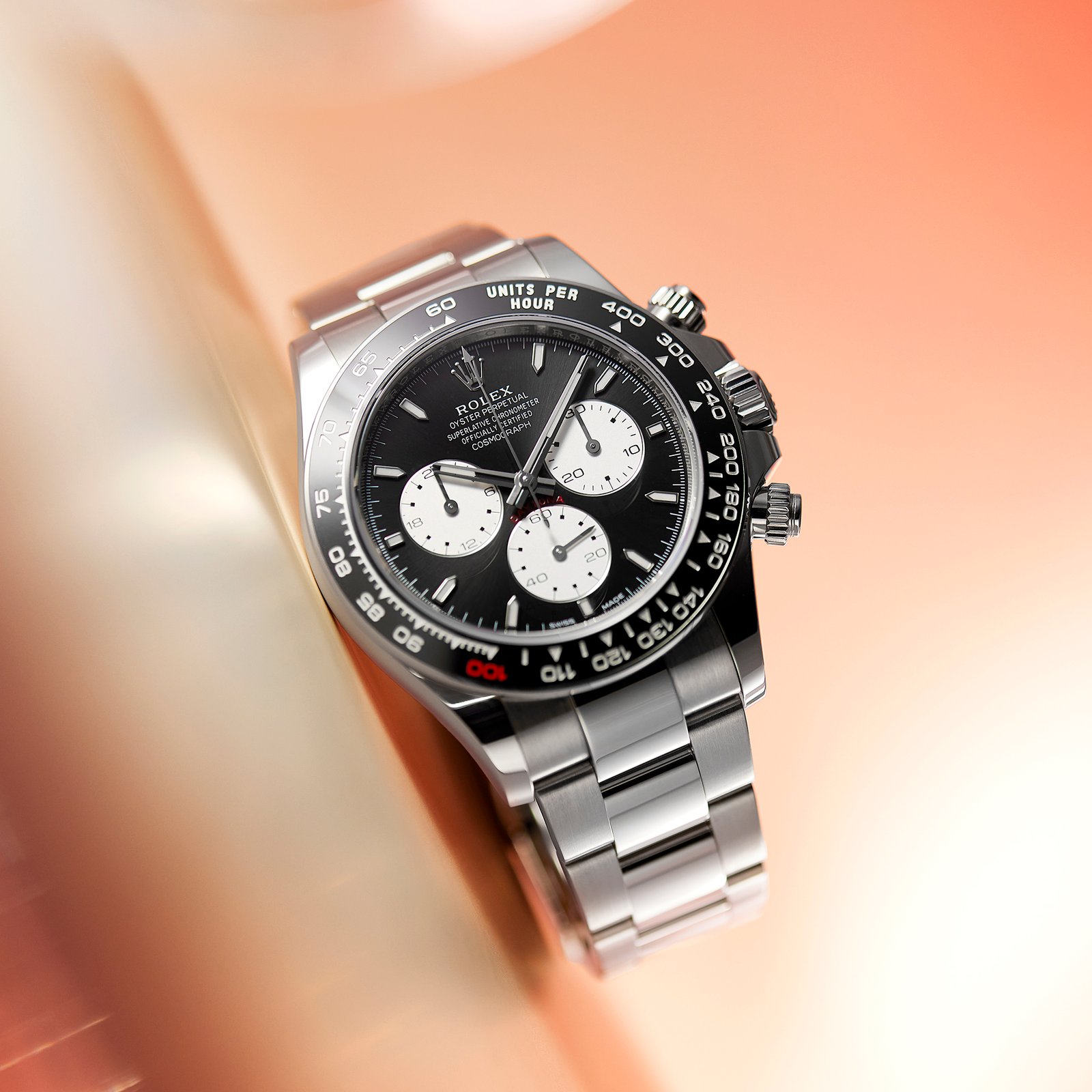The Rolex Daytona White Gold Black Dial “Le Mans” ref. 126529LN-0001 is a remarkable timepiece that pays tribute to the 100th anniversary of the legendary endurance race Le Mans. Expertly crafted from white gold, the 40mm case showcases a harmonious blend of opulence and durability. The black dial, reminiscent of the iconic Le Mans racetrack, features contrasting white-tone sub-dials, red hues, and luminescent hands, ensuring optimal readability. The black ceramic bezel, meticulously engraved with a tachymetric scale, adds a touch of sporty sophistication. Powering this exceptional chronograph is the self-winding Calibre 4132 movement, renowned for its precision and reliability. The white gold Oyster bracelet, equipped with an Oysterlock clasp, offers a secure and comfortable fit. With its distinctive design and exceptional performance, the Daytona White Gold Black Dial “Le Mans” ref. 126529LN-0001 is a coveted choice for motorsport enthusiasts and watch connoisseurs seeking the epitome of elegance and precision.