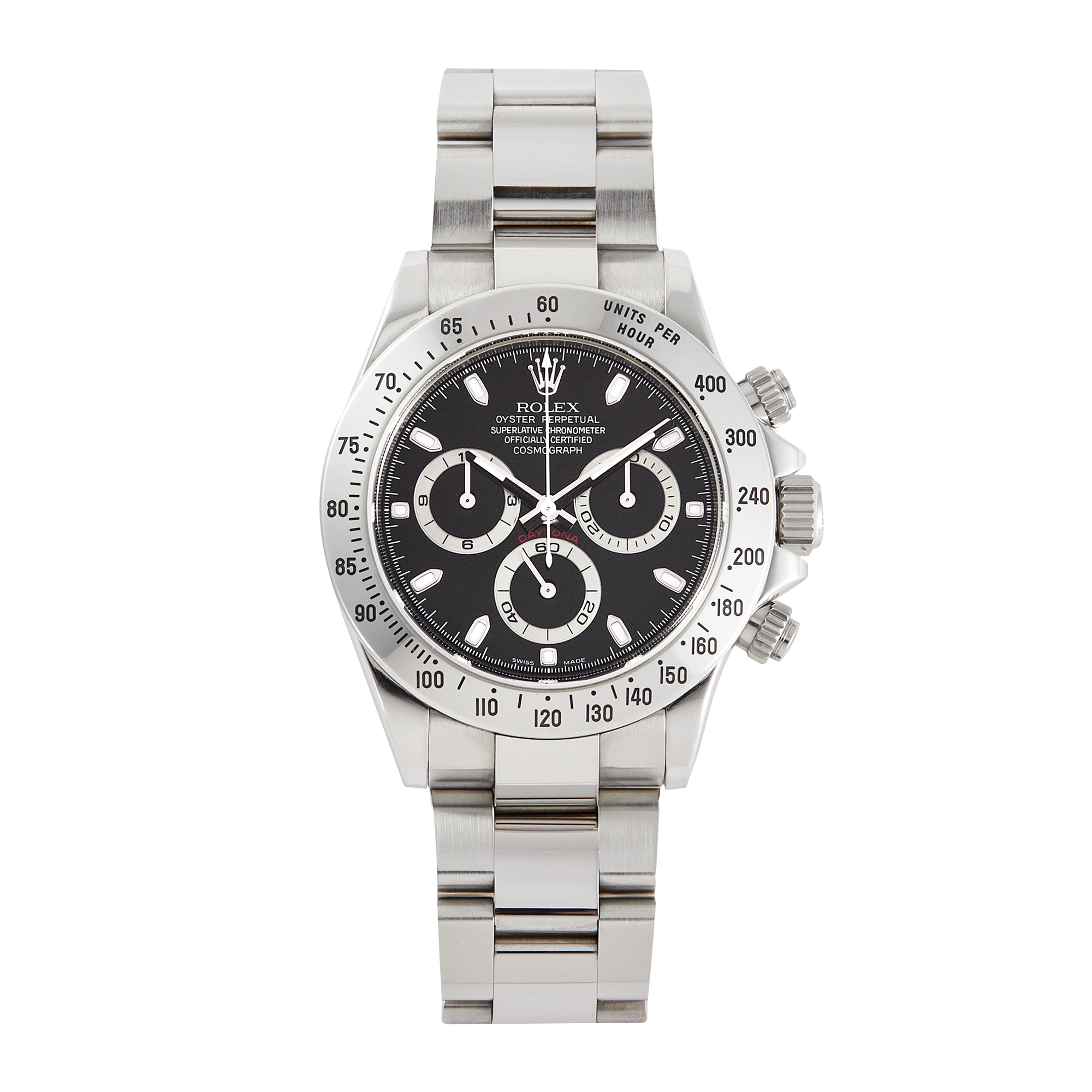 The Rolex Daytona Stainless Steel Black Dial is a modern interpretation of one of the brand’s most iconic and enduring models. With roots dating back to the 1960s, the Daytona has long been regarded as the quintessential sports chronograph, and this latest iteration upholds that storied legacy. Encased in a sleek 40mm stainless steel case, the Rolex Daytona Stainless Steel Black Dial features a striking black dial with luminescent index markers and hands, ensuring exceptional legibility even in low-light conditions. The stainless steel bezel with its iconic tachymetric scale adds a touch of functionality, allowing the wearer to precisely measure elapsed time. Powered by the renowned Calibre 4130, a self-winding movement with a 72-hour power reserve, the Rolex Daytona Stainless Steel Black Dial is a true workhorse, equally at home on the racetrack or in the boardroom. The stainless steel bracelet, secured with a folding clasp, completes the package, providing a comfortable and durable wearing experience. Whether you’re timing laps on the circuit or simply keeping track of your daily activities, the Rolex Daytona Stainless Steel Black Dial is a timepiece that combines timeless style, exceptional performance, and the storied heritage of one of the world’s most iconic watch brands.Read MorePerfect Companion for a Checkered Flag