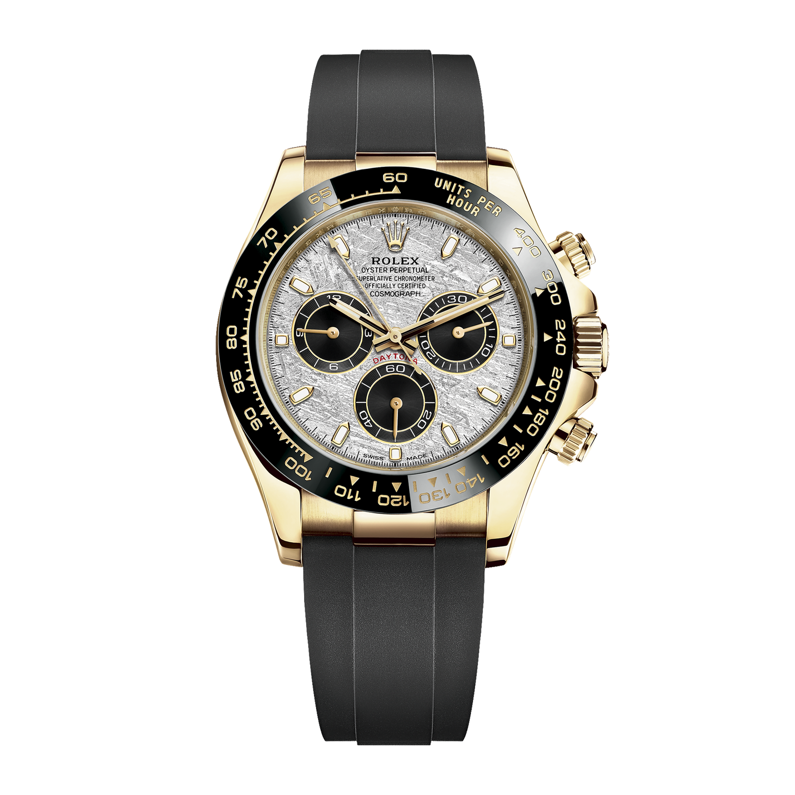The Rolex Daytona has long been synonymous with motorsport excellence, and the Daytona Yellow Gold Oysterflex Meteorite Dial takes this iconic timepiece to new heights. Launched in 2021, this exceptional watch blends the brand’s rich racing heritage with a striking, modern aesthetic that is sure to captivate any watch enthusiast. Crafted from the finest 18-carat yellow gold, the 40mm Oyster case of the Daytona exudes an unmistakable air of luxury and refinement. The mesmerizing meteorite dial, with its unique, natural patterns, creates a captivating contrast against the luminescent indices, while the black Oysterflex bracelet provides a comfortable and secure fit. Powering this exceptional timepiece is the Calibre 4130, a self-winding movement that boasts a 72-hour power reserve and chronometer certification, ensuring exceptional accuracy and reliability. The Daytona’s features, including a chronograph function and a column-wheel mechanism, make it a true tool watch for the discerning driver, while its robust water resistance of 100m allows it to be worn with confidence in a variety of environments. Whether you’re navigating the winding roads of a racetrack or attending a formal event, the Rolex Daytona Yellow Gold Oysterflex Meteorite Dial is a true statement of style and performance. Its blend of timeless elegance and cutting-edge functionality make it a must-have for any watch enthusiast seeking the ultimate in luxury and precision.Read More