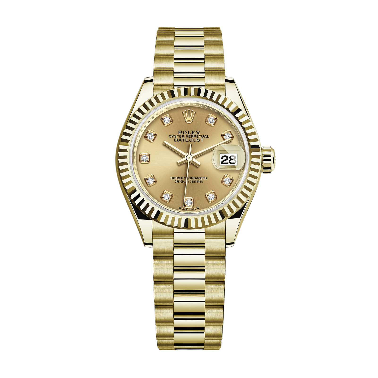 Lady-Datejust Yellow Gold President Champagne Dial 28mm