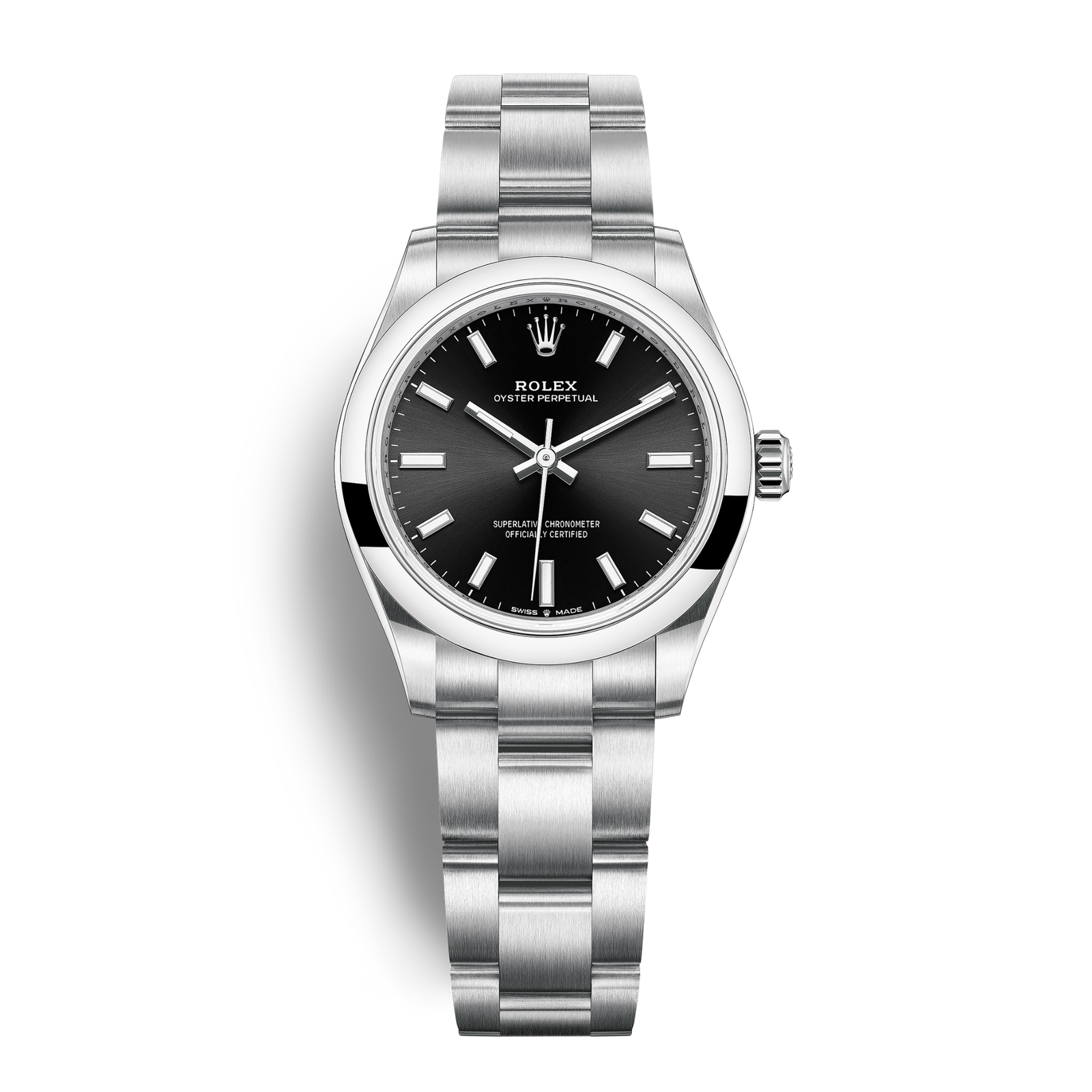 Discover the Rolex Oyster Perpetual 31mm ref. 277200-0002, a perfect blend of style and functionality. This model features a striking black dial with a sunray finish, creating a dynamic effect as light reflects off its surface. The dial is enhanced by luminescent index markers, ensuring visibility in all conditions. Crafted from Oystersteel, a corrosion-resistant material, the watch maintains its polished beauty even in challenging environments. The 31mm case is complemented by a robust stainless steel bezel and a sapphire crystal for added durability. Powered by the Calibre 2232 movement, this timepiece offers a reliable 55-hour power reserve and self-winding capabilities. With water resistance up to 100 meters, it’s suitable for daily wear. The Oyster bracelet, known for its comfort and strength, features a secure folding clasp. The Rolex Oyster Perpetual 31mm is an ideal choice for those seeking a versatile and elegantly designed watch.Read More