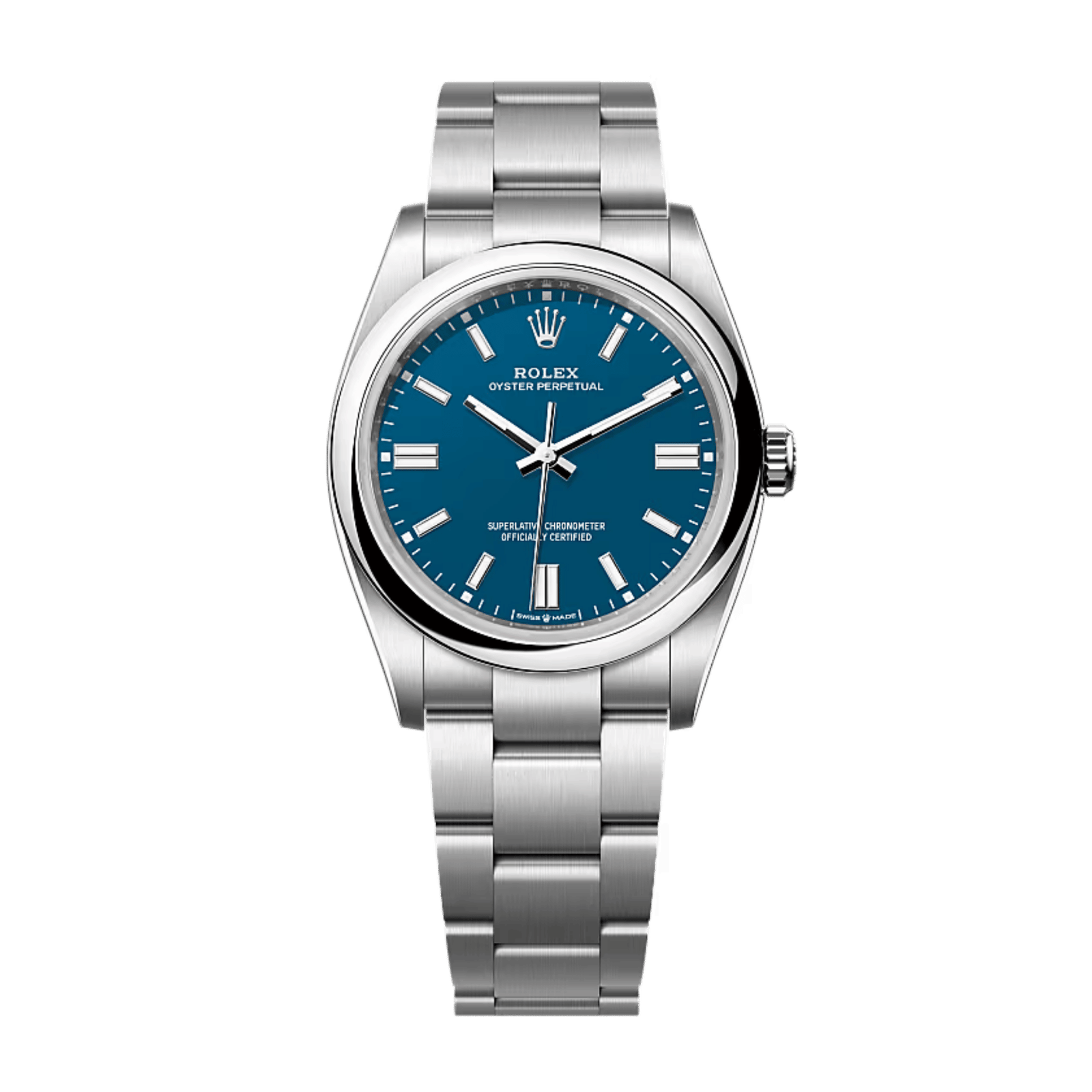 Rolex Oyster Perpetual Steel Blue Dial 36mm Ref. 126000-0015 features a classic 36mm Oystersteel case paired with a vibrant medium blue lacquered dial, created through a meticulous six-layer process for a flawless finish. The robust case is fitted with a scratch-resistant sapphire crystal and offers water resistance to 100 meters, ensuring dependable daily performance. Powered by Rolex’s calibre 3230 selfwinding movement, the watch delivers a 70-hour power reserve and chronometer-certified precision. Luminescent hour markers and hands provide optimal legibility, while the integrated Oyster bracelet, known for its comfort and durability, closes securely with a folding Oysterclasp. This watch exemplifies Rolex’s dedication to fundamental timekeeping, combining straightforward functionality for hours, minutes, and seconds with enduring design and technical reliability.Read More