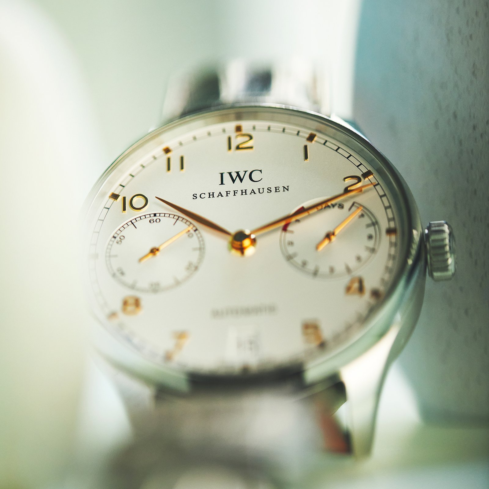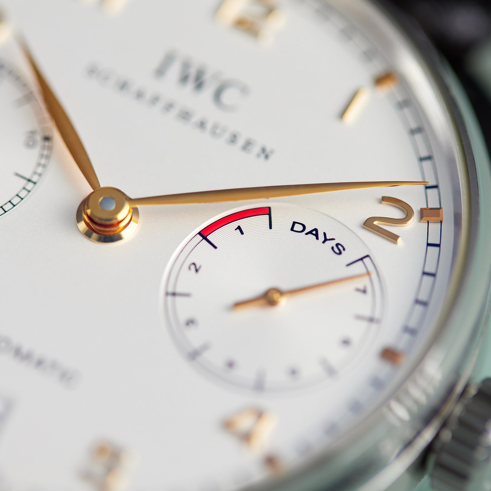 Introducing the IWC Portugieser Steel Silver Dial 42mm, ref. IW500114. This distinguished watch embodies precision and sophistication, perfect for both formal and casual occasions. Crafted from stainless steel, the 42 mm case features a sleek silver dial with bold Arabic numerals for excellent legibility. The watch is protected by a sapphire crystal, ensuring durability and clarity. Powered by the self-winding Calibre 51011 movement, this timepiece boasts an impressive power reserve of 168 hours, allowing for extended wear without winding. Additional features include a date function and a power reserve indicator, enhancing its practicality. The black alligator leather strap, secured with a stainless steel pin buckle, adds a touch of refinement. With water resistance rated at 30 meters, the IWC Portugieser is designed for everyday use. This model seamlessly combines functionality with classic design, making it an ideal choice for watch enthusiasts.Read More