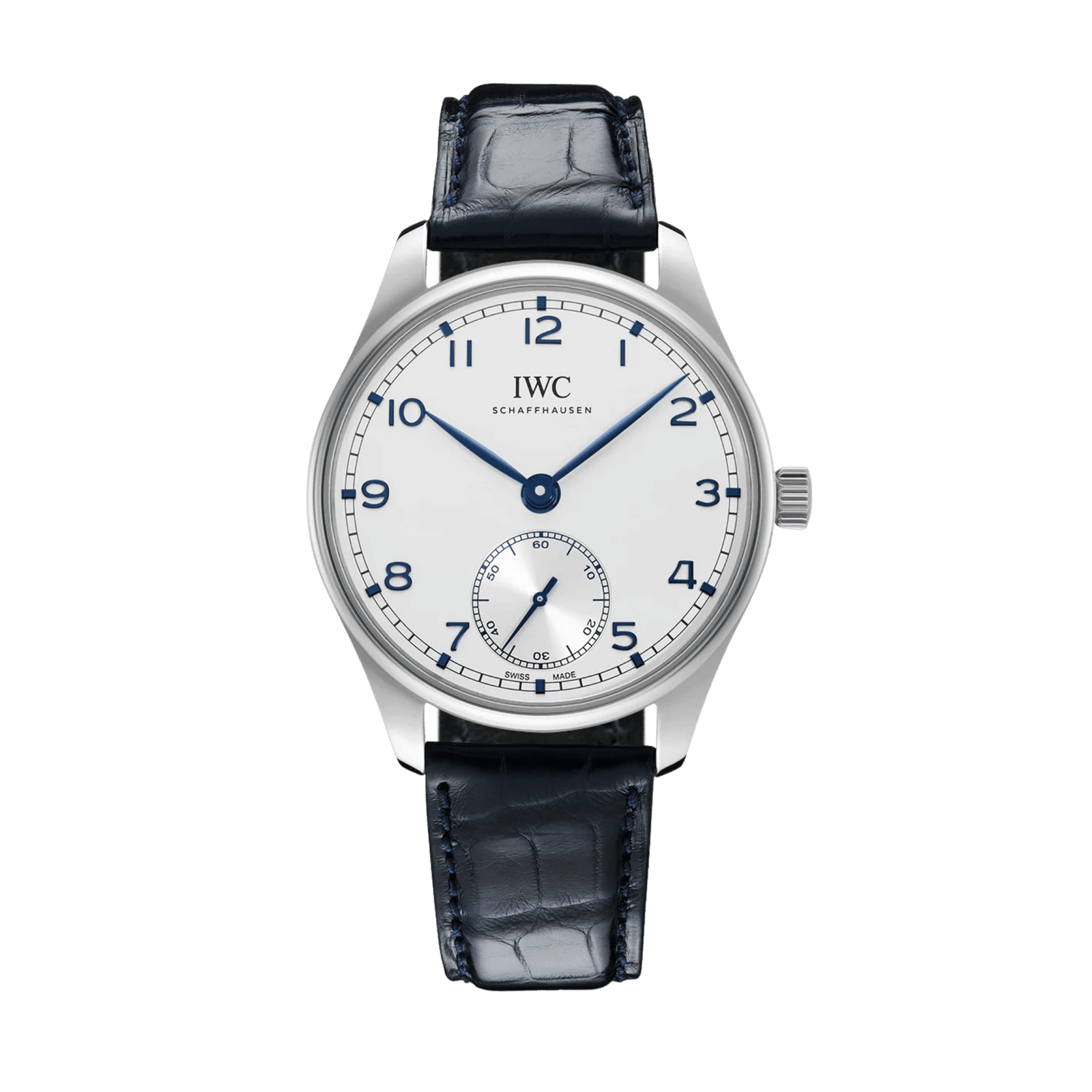 At just 12.4mm thick, the case rests comfortably on the wrist, framing a symmetrical dial with Arabic numerals, leaf hands, and a small seconds subdial at 6 o’clock – all signature elements of the Portugieser design code. Inside, the in-house calibre 82200 features Pellaton winding with ceramic components, offering a 60-hour power reserve. The display caseback reveals its refined finishing and efficient automatic architecture. Water-resistance is rated to 30m.