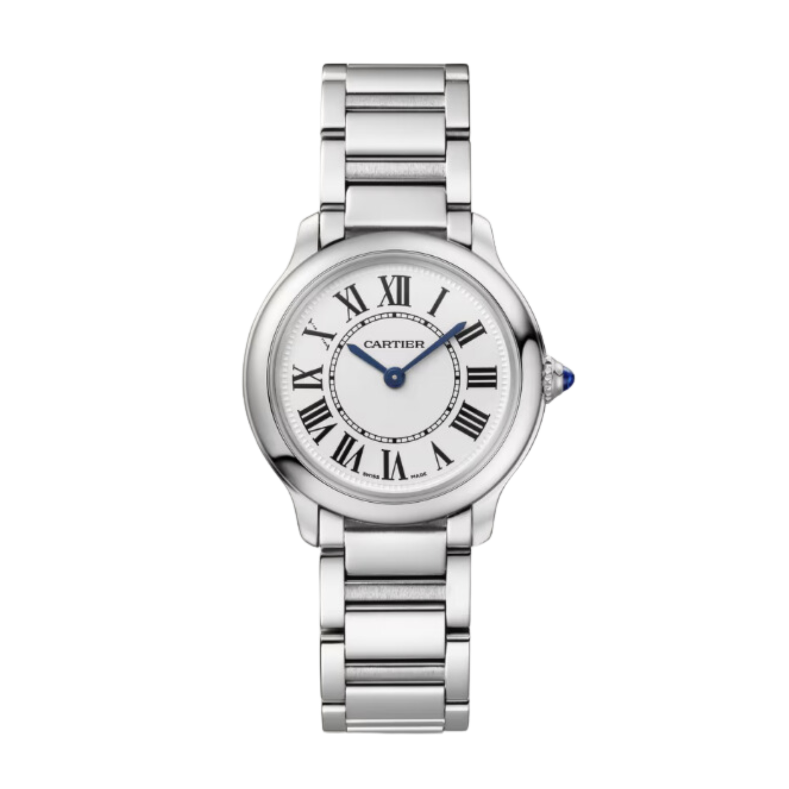 Introducing the Cartier Ronde Must de Cartier Steel Silver Dial, ref. WSRN0033. This elegant 29mm watch combines refined aesthetics with practical functionality, making it a versatile addition to any collection. The sandblasted silvered dial features classic Roman numeral indexes and blued-steel sword-shaped hands, ensuring clear timekeeping. Housed in a stainless steel case, the watch is complemented by a beaded crown set with a synthetic cabochon-shaped spinel, adding a touch of luxury. Powered by a high-autonomy quartz movement, this watch offers approximately 8 years of reliable performance. It is water-resistant up to 30 meters, making it suitable for everyday wear. The stainless steel strap is designed with an interchangeability system, allowing for easy customization. With a thickness of just 7.54mm, the Ronde Must de Cartier is both stylish and comfortable, embodying the brand’s commitment to craftsmanship since its launch in 1989.Read More