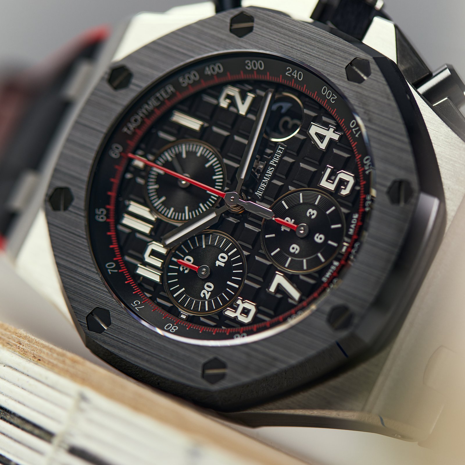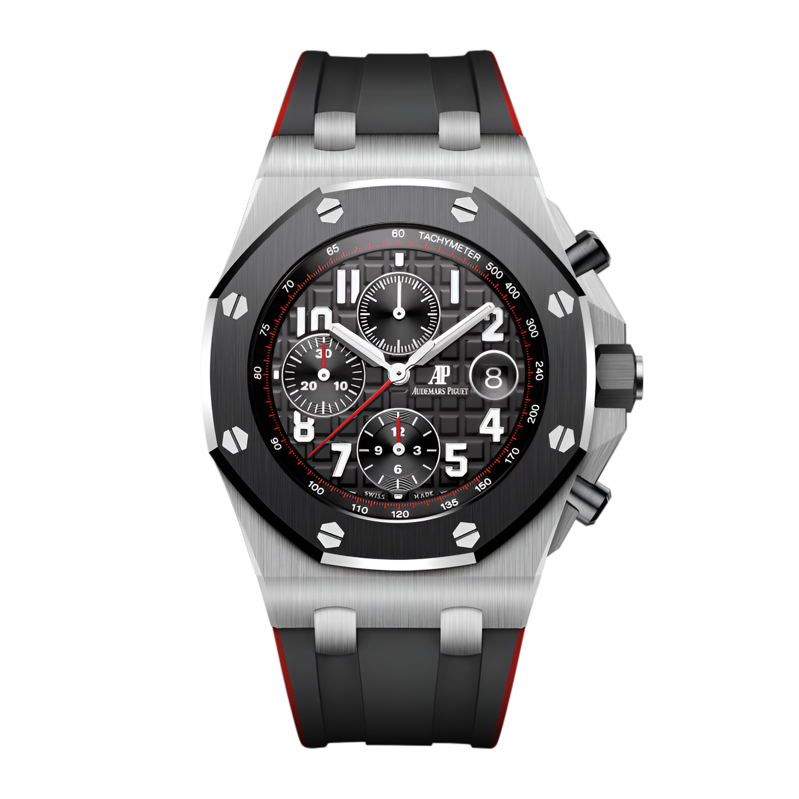 Introducing the Audemars Piguet Royal Oak Offshore Steel Black Dial 42mm, a watch designed for those who embrace adventure without compromising on style. Launched in 2018, this model is a testament to the Royal Oak Offshore collection’s legacy of bold design and exceptional performance, seamlessly merging luxury with functionality. The watch features a robust stainless steel case and a striking black dial with the iconic “Méga Tapisserie” pattern. Enhanced with Arabic numerals and white gold Royal Oak hands, the dial is both sporty and sophisticated. The black ceramic pushpieces and screw-locked crown ensure durability, while the black inner bezel adds a sleek touch. Powered by the Calibre AP 3126 / 3840 self-winding movement, this chronograph offers a 50-hour power reserve and is water-resistant up to 100 meters, making it perfect for both aquatic adventures and daily wear. The two-tone black and red rubber strap adds a pop of color, secured with a stainless steel pin buckle for comfort. Whether you’re exploring the outdoors or attending a casual event, the Audemars Piguet Royal Oak Offshore is the ultimate companion for the modern adventurer.Read More
