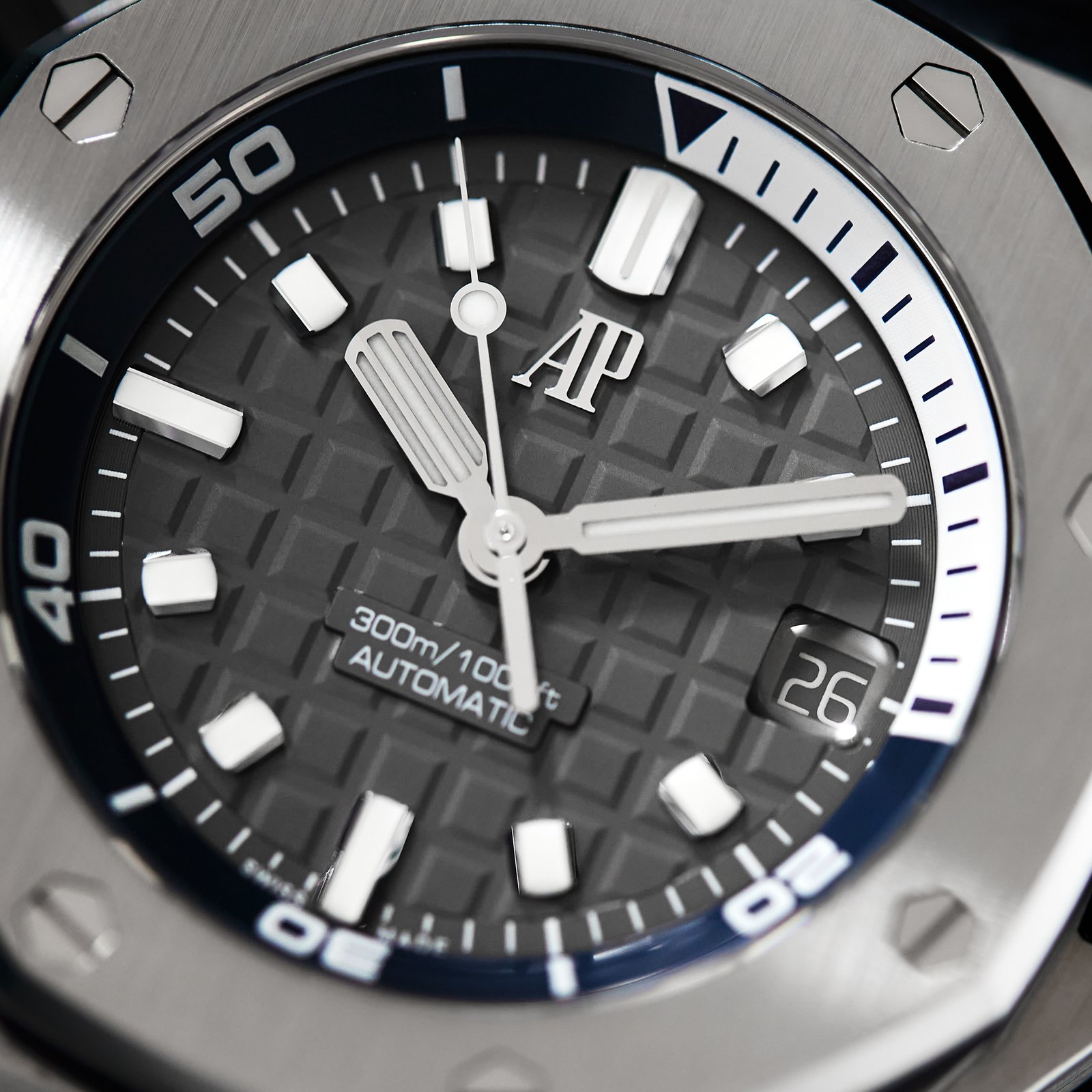 Experience the Audemars Piguet Royal Oak Offshore Steel Grey Dial 42mm ref. 15720ST.OO.A009CA.01, a robust yet refined timepiece designed for adventurers. This watch features a durable 42mm stainless steel case with a glareproofed sapphire crystal, ensuring clarity and protection. The striking grey dial showcases the iconic “Méga Tapisserie” pattern, complemented by white gold applied hour markers and luminescent Royal Oak hands for optimal visibility. A unique blue rotating inner bezel adds functionality, marking time segments from 60 to 15 minutes. Powered by the self-winding Calibre AP 3120 movement, this watch offers a reliable 60-hour power reserve and is water-resistant up to 300 meters, making it ideal for aquatic activities. The grey rubber strap includes a stainless steel pin buckle and an interchangeable strap system, allowing for customization. With its blend of style and performance, this Royal Oak Offshore is a statement piece for any collection.Read More