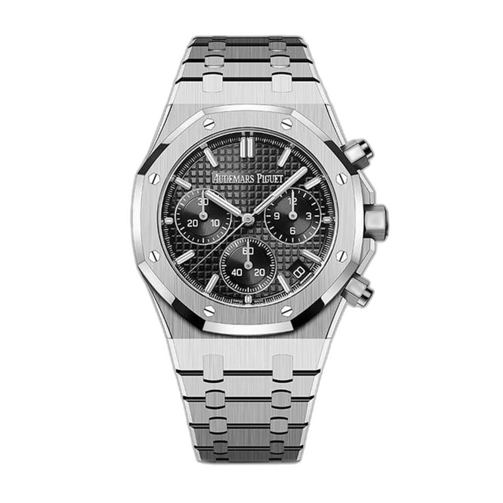 Introducing the Audemars Piguet Royal Oak Selfwinding Chronograph “50th Anniversary” Steel Black Dial 41mm ref. 26240ST.OO.1320ST.02, a celebration of iconic design and precision. This 41mm chronograph pairs a stainless steel case with a striking black “Grande Tapisserie” dial, embodying the evolution of the Royal Oak aesthetic. The dial features black counters and white gold applied hour markers, complemented by luminescent Royal Oak hands for enhanced visibility. The watch is powered by the Calibre AP 4401 movement, offering a remarkable 70-hour power reserve and flyback chronograph functionality. A sapphire caseback reveals the special “50-years” oscillating weight, showcasing the craftsmanship within. The stainless steel bracelet is equipped with an AP folding clasp, ensuring both comfort and security. With water resistance up to 50 meters, this watch combines style with practicality, making it an essential piece for collectors and enthusiasts alike.Read More