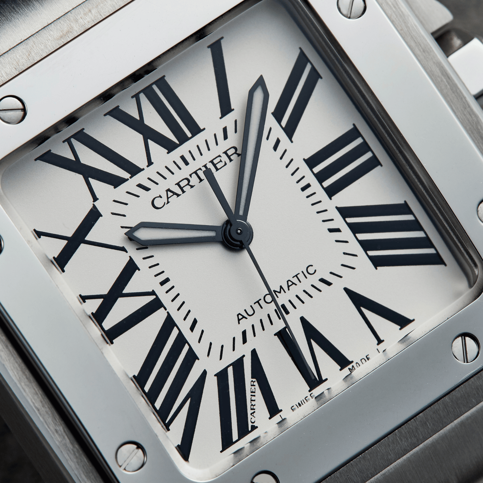 The Cartier Santos 100 Steel White Dial has a rich history rooted in the early 20th century. Inspired by the famous Brazilian aviator Alberto Santos Dumont, Louis Cartier created one of the first wristwatches designed specifically for men in 1904. This groundbreaking timepiece not only facilitated timekeeping during flight but also transformed wristwatches into essential accessories. Over a century later, the Santos collection continues to be a hallmark of Cartier’s innovation, exemplifying both style and functionality. The Santos 100, launched in 2004, introduced a bolder aesthetic to this classic design, making it a popular choice for contemporary watch enthusiasts.