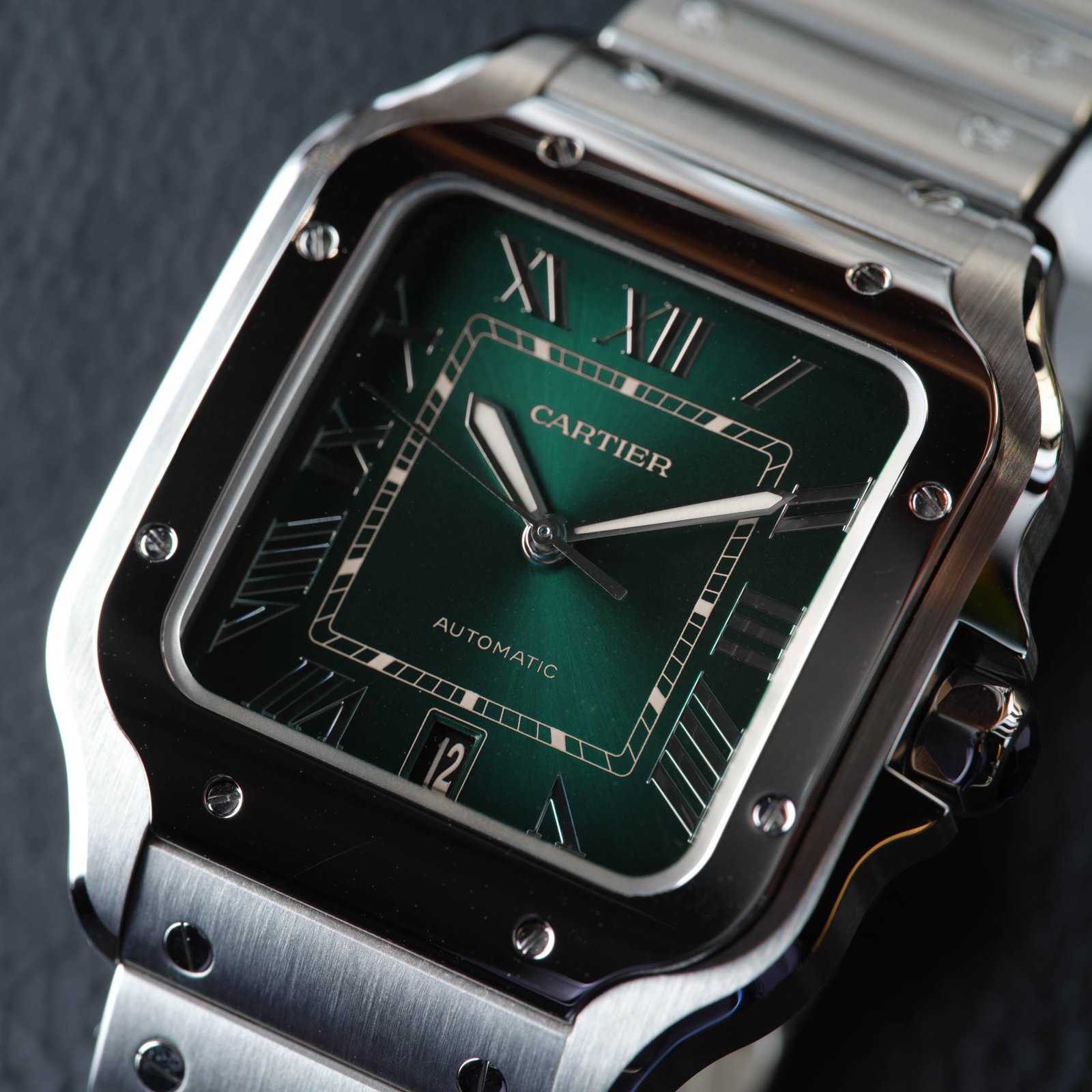 Since its introduction in 1904, the Cartier Santos has been a symbol of refined style and innovation. The Cartier Santos de Cartier 39 Stainless Steel Green Dial continues this legacy with a striking and contemporary interpretation of this iconic timepiece. Crafted in stainless steel, this 39mm Santos de Cartier features a captivating green dial that immediately draws the eye. The distinctive square case shape and the bezel’s brushed stainless steel finish lend the watch a timeless, yet modern aesthetic. Roman numeral hour markers and sleek, polished hands ensure exceptional legibility, while the sapphire crystal protects the dial from scratches. Powered by the Calibre 1847 MC, a self-winding mechanical movement with a 42-hour power reserve, the Santos de Cartier 39 combines precision timekeeping with a remarkably comfortable fit on the wrist. The stainless steel bracelet, complete with a deployment clasp, seamlessly integrates with the case, providing a secure and adjustable fit that adapts to your daily activities. Whether you’re navigating the boardroom or enjoying a weekend adventure, the Cartier Santos de Cartier 39 Stainless Steel Green Dial is a versatile companion that effortlessly transitions between formal and casual settings. Its unique case shape, striking green dial, and surprisingly comfortable wear make this timepiece a true icon for the modern era.Read More