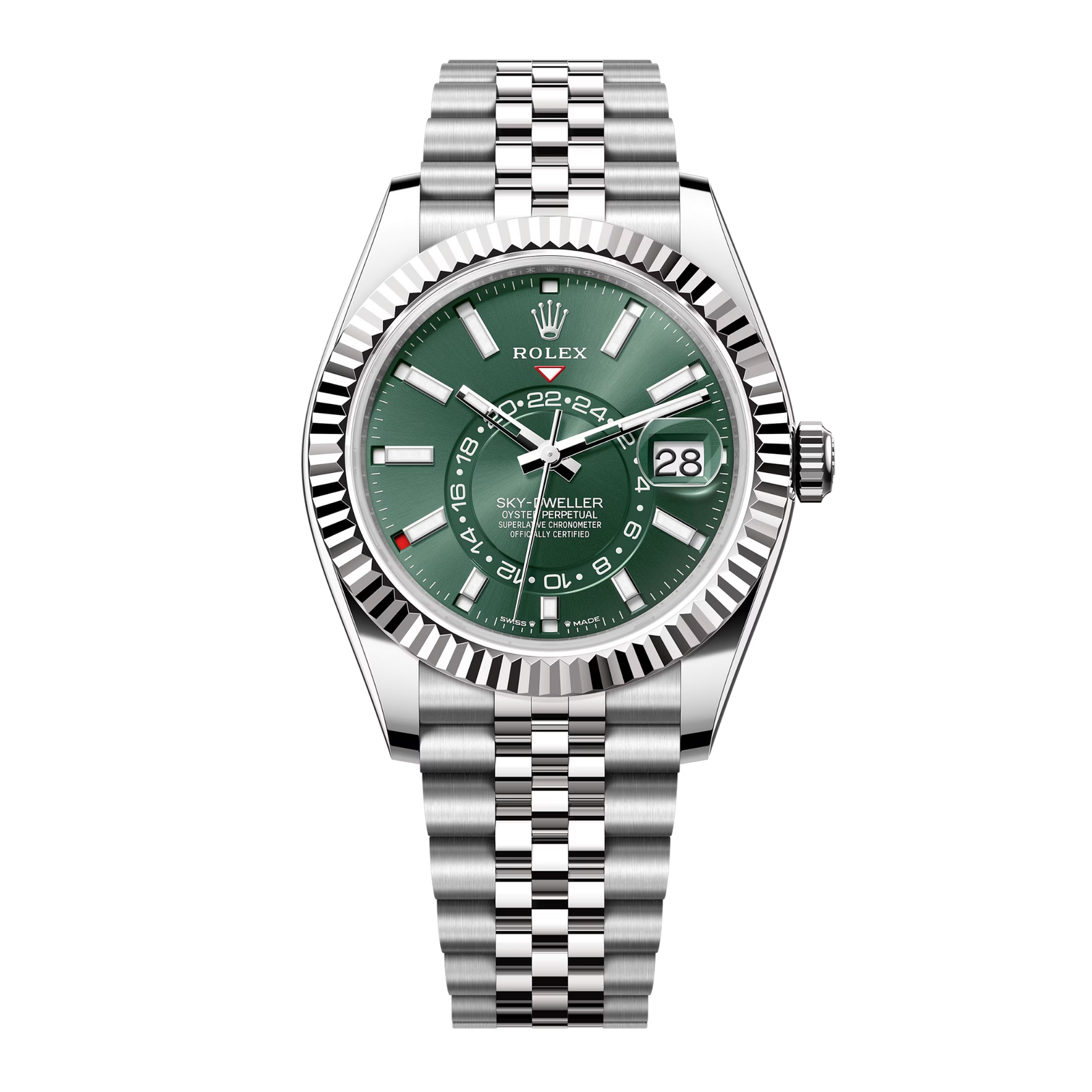 Delivered on a five-link Jubilee bracelet, the 336934-0002 balances luxury and functionality for frequent travellers. The combination of green sunray dial and white Rolesor construction has made this one of the most discussed Sky-Dwellers in its class.Read More