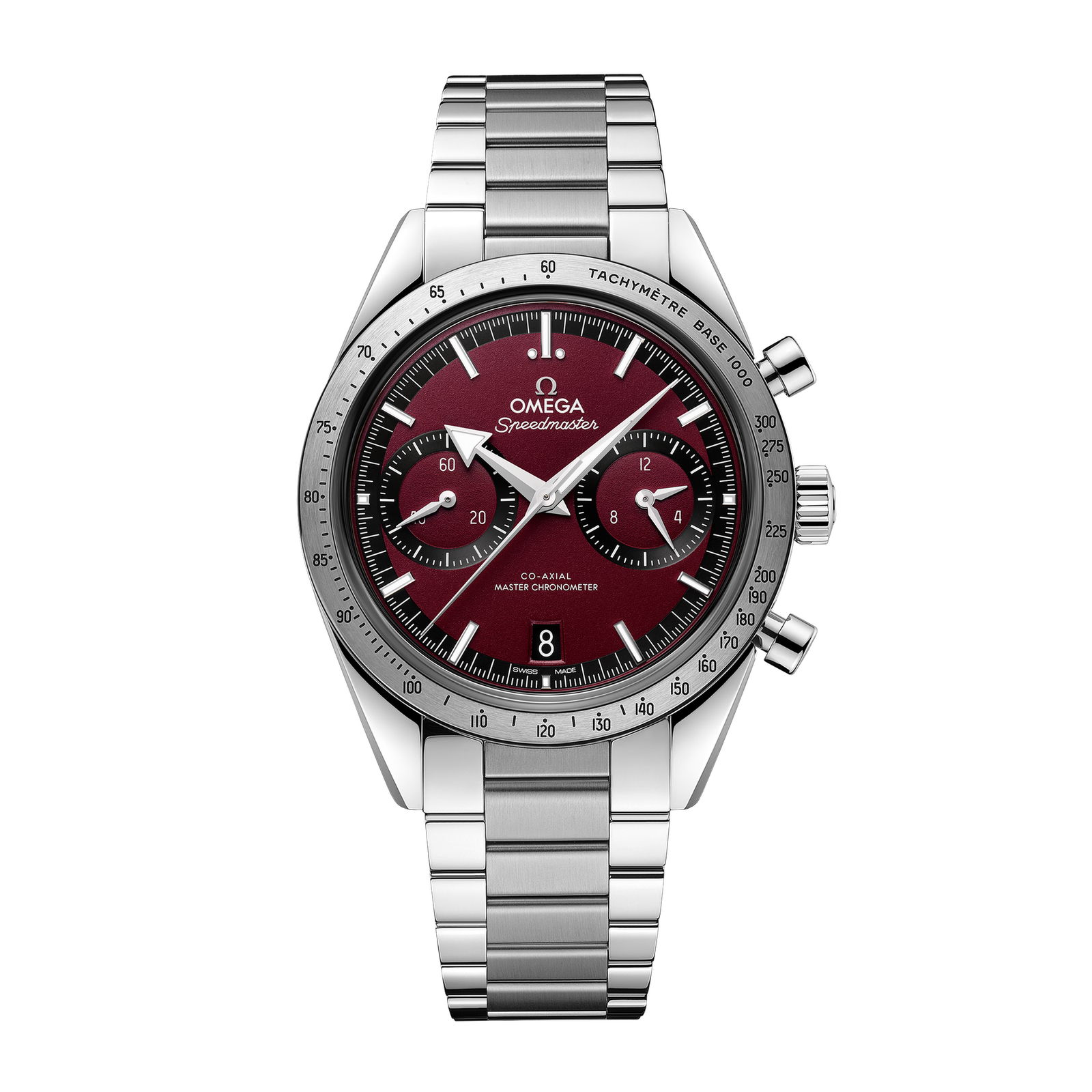 The Omega Speedmaster 57 ref. 332.10.41.51.11.001 is a dynamic timepiece that blends iconic design with contemporary flair. Encased in a 41mm stainless steel body, the watch showcases a striking red dial, creating a bold statement on the wrist. This model pays tribute to the original Speedmaster’s timeless style, featuring two sub-dials at 3 and 9 o’clock for chronograph functionality, a date window at 6 o’clock, and the signature tachymeter scale on the bezel. Powered by the advanced Omega Co-Axial Master Chronometer Calibre 9906, this watch guarantees precision and durability with a power reserve of 60 hours. Super-LumiNova on the hands and hour markers ensures visibility in all conditions, maintaining the Speedmaster’s legacy of readability. Water-resistant to 100 meters, the Speedmaster 57 is as resilient as it is exquisite. The stainless steel bracelet provides a secure and comfortable fit, making this watch a timeless companion for any occasion.