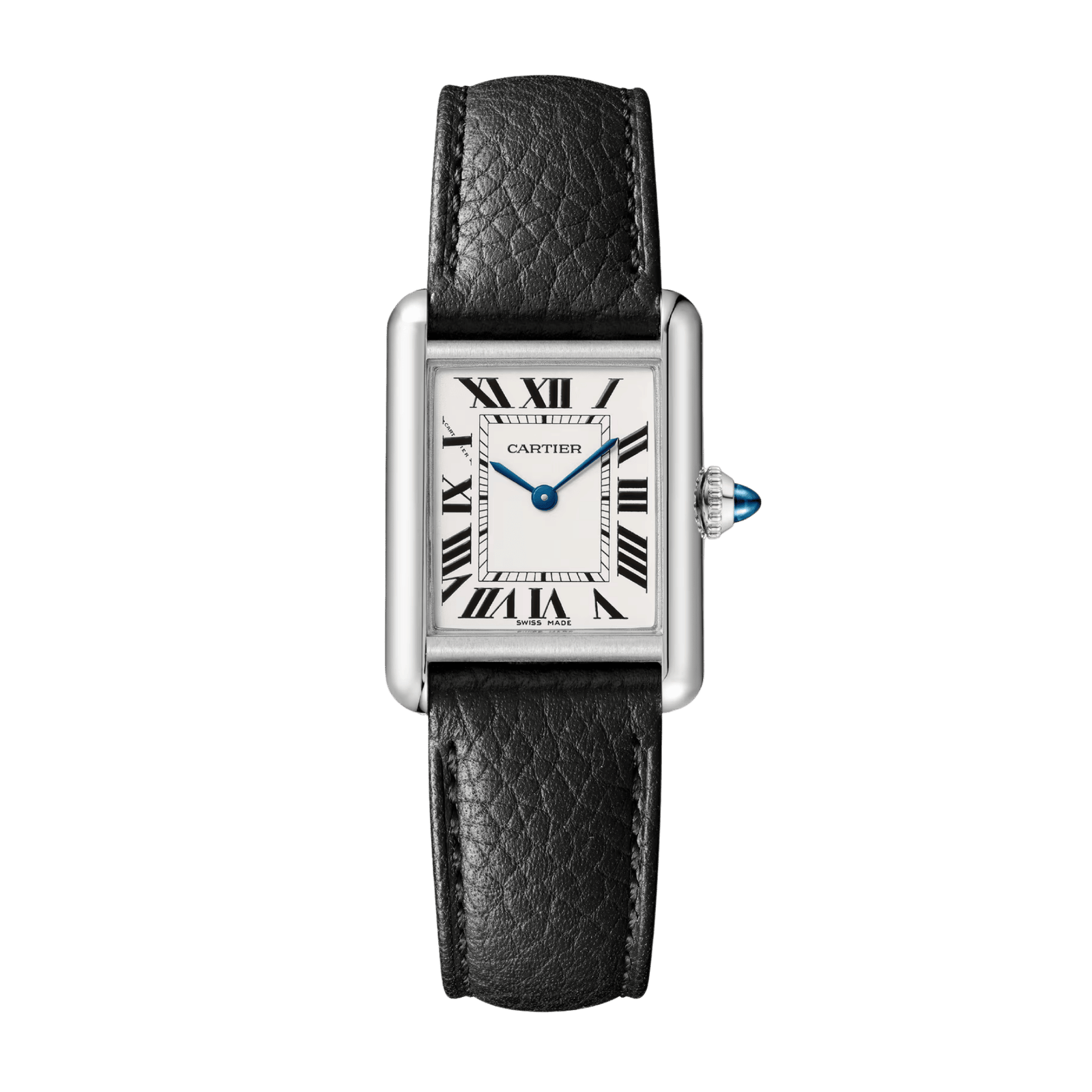 The Tank Must de Cartier Steel White Dial 22mm Ref. WSTA0110 is a modern reinterpretation of Cartier’s iconic Tank watch, combining timeless design with contemporary functionality. This small model features a 22mm stainless steel case with flat vertical brancards that seamlessly integrate into the lugs, creating the Tank’s signature silhouette. The silvered dial, adorned with bold Roman numerals and blued-steel sword-shaped hands, is protected by a sapphire crystal. A beaded crown set with a synthetic cabochon-shaped spinel adds an elegant finishing touch. Powered by a high-autonomy quartz movement, this watch is both reliable and low-maintenance. The interchangeable black grained calfskin strap, paired with a stainless steel ardillon buckle, adds versatility to its sleek design. Measuring just 6.6mm in thickness and water-resistant to 30 meters, the Ref. WSTA0110 is a refined and practical choice for those who appreciate Cartier’s enduring watchmaking legacy.Read More