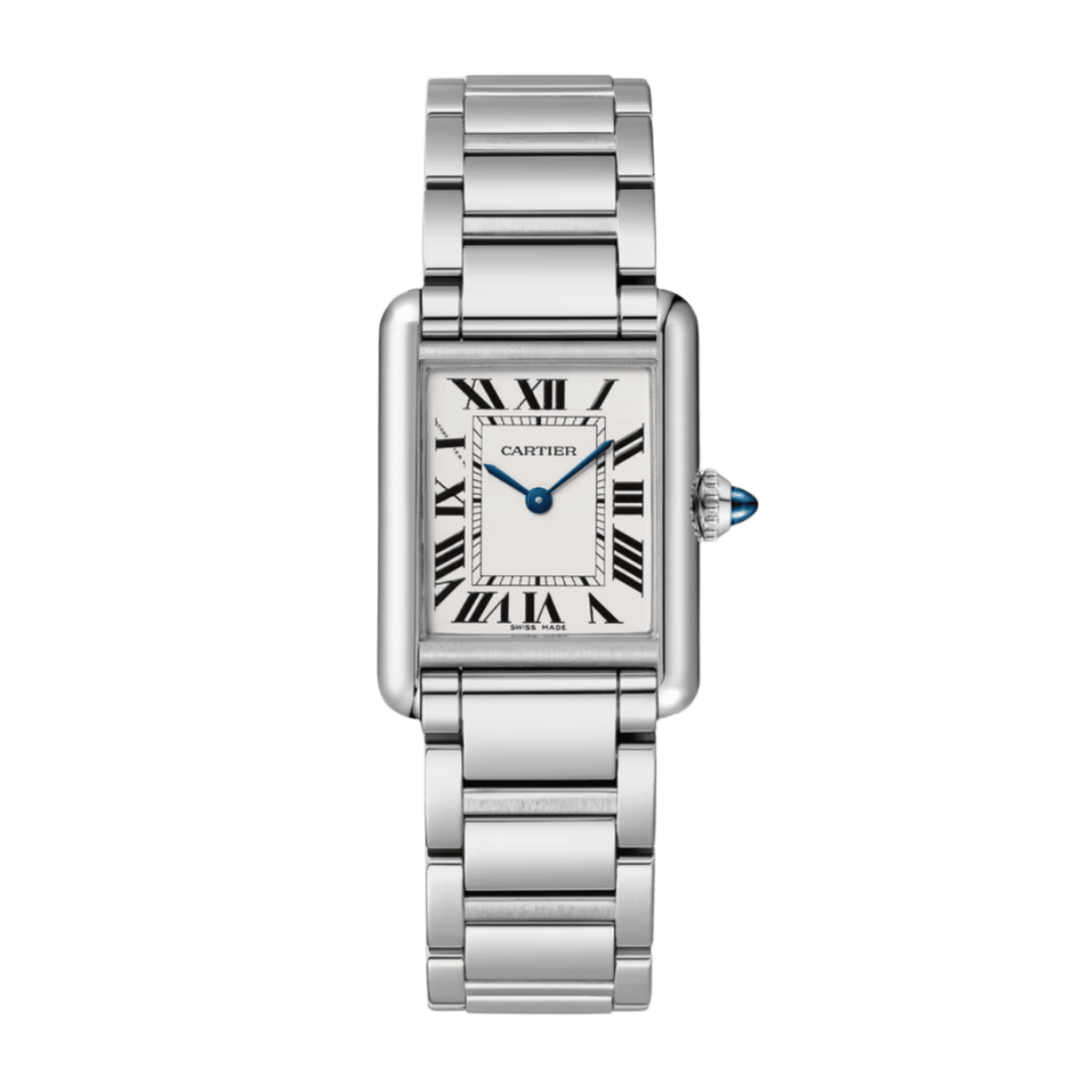 The Tank Must Watch ref. WSTA0051 is an exquisite embodiment of Cartier’s storied legacy, featuring a rectangular case shape that pays homage to the groundbreaking original Tank watch conceived in 1917. This incarnation of the classic design marries sophistication with versatility, its streamlined contours rendering it suitable for a diverse array of settings, from the boardroom to intimate evening events. The piece is anchored by a robust stainless steel bracelet, its luster complementing the silvered dial’s refined aesthetic. This Tank Must timepiece is not merely a watch but a symbol of Cartier’s enduring commitment to horological excellence and timeless style, making it an essential addition to the collection of any connoisseur of fine watches.