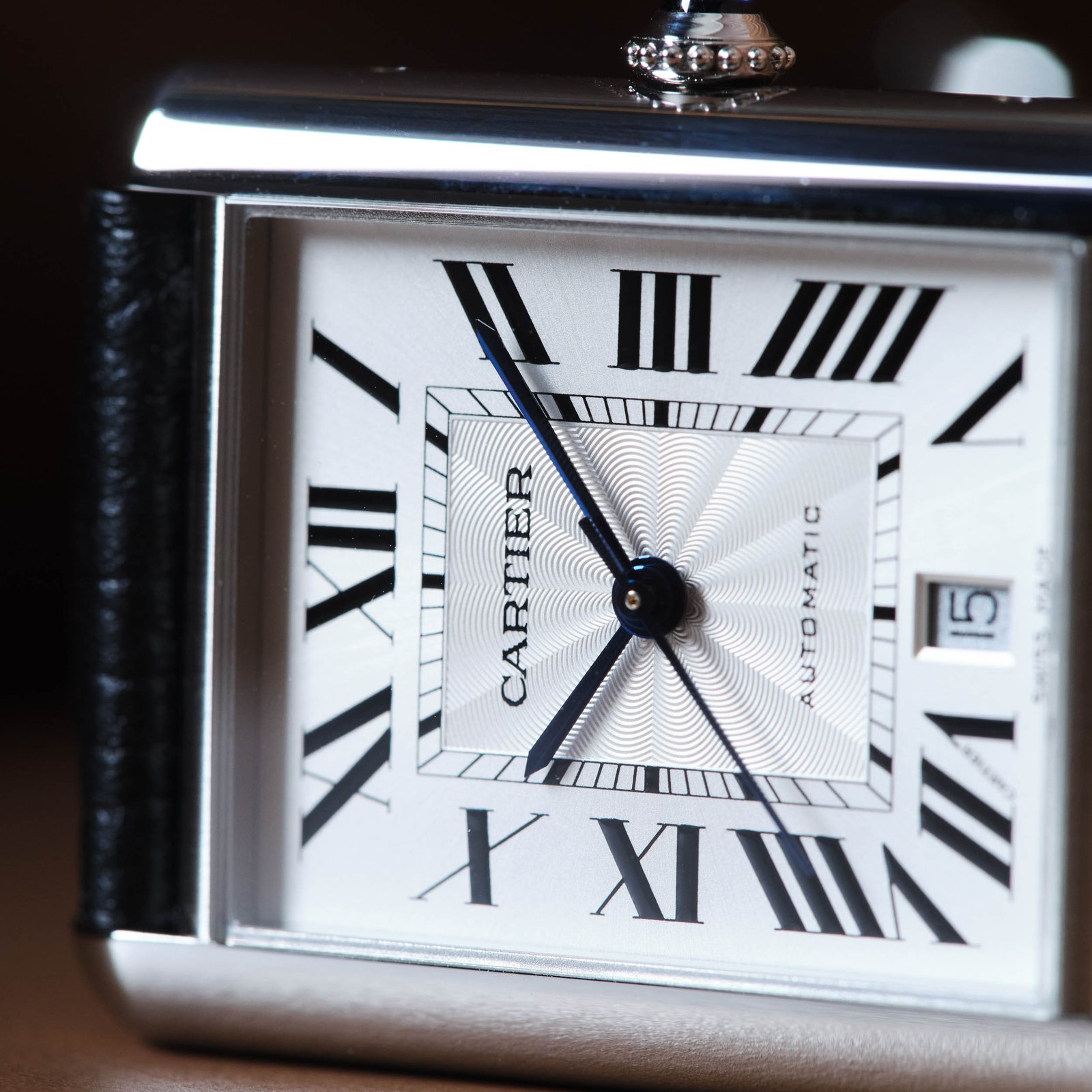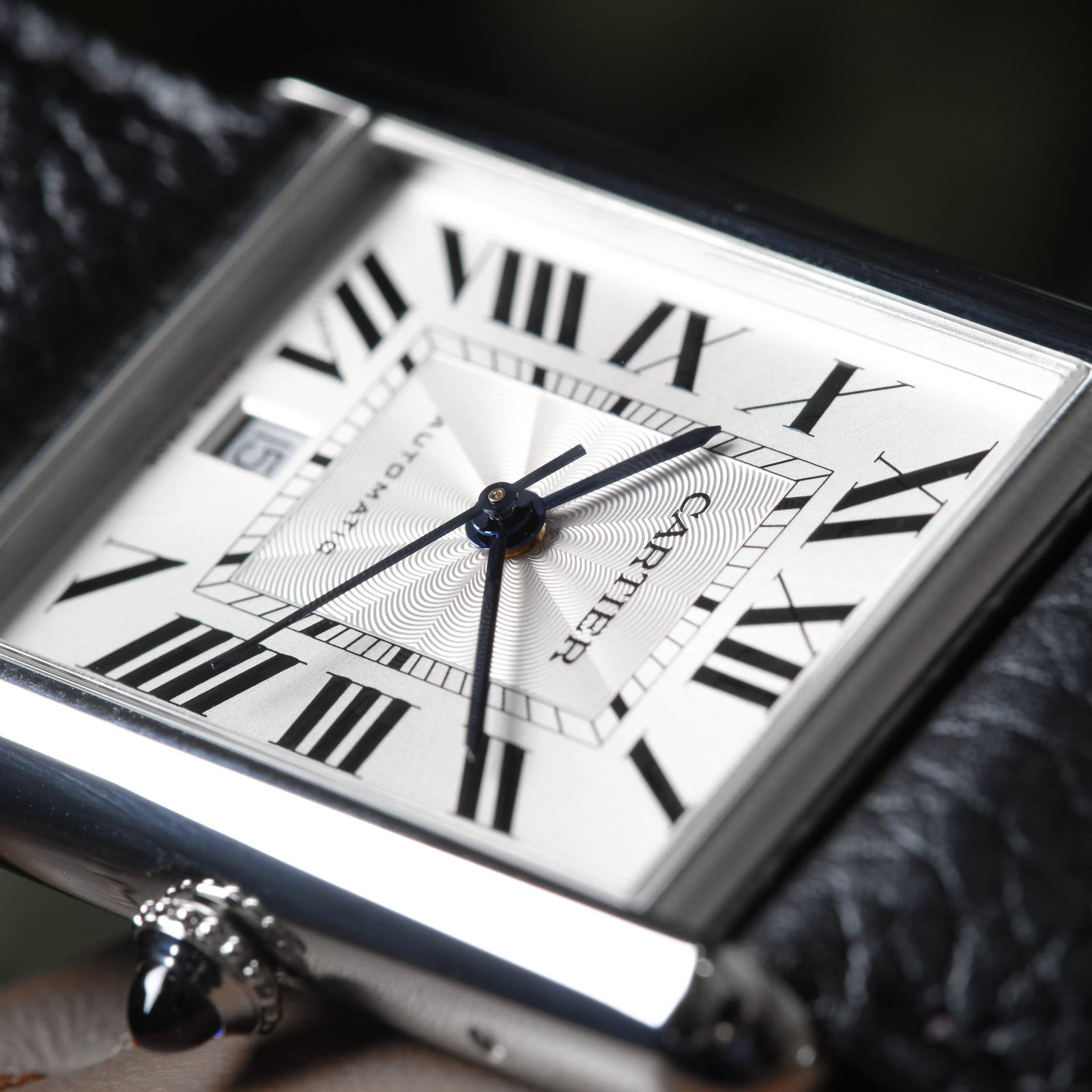 Introducing the Cartier Tank Steel Silver Dial, a refined symbol of sophistication. This 31 mm watch features a stunning silvered flinqué dial, enhanced by Roman numeral markers and blued-steel sword-shaped hands for clear readability. The stainless steel case measures 41 mm x 31 mm with a thickness of 8.4 mm, exuding both style and durability. Powered by the self-winding Caliber 1847 MC movement, this timepiece offers a 42-hour power reserve and includes a convenient date aperture at 6 o’clock. The beaded crown, set with a synthetic cabochon-shaped spinel, adds a unique touch. Complemented by a black grained calfskin strap, secured with an interchangeable stainless steel folding buckle, this watch ensures comfort and versatility. With a water resistance of up to 30 meters, the Cartier Tank ref. WSTA0040 is ideal for daily wear, making it a classic choice for those who appreciate timeless design and craftsmanship.Read More