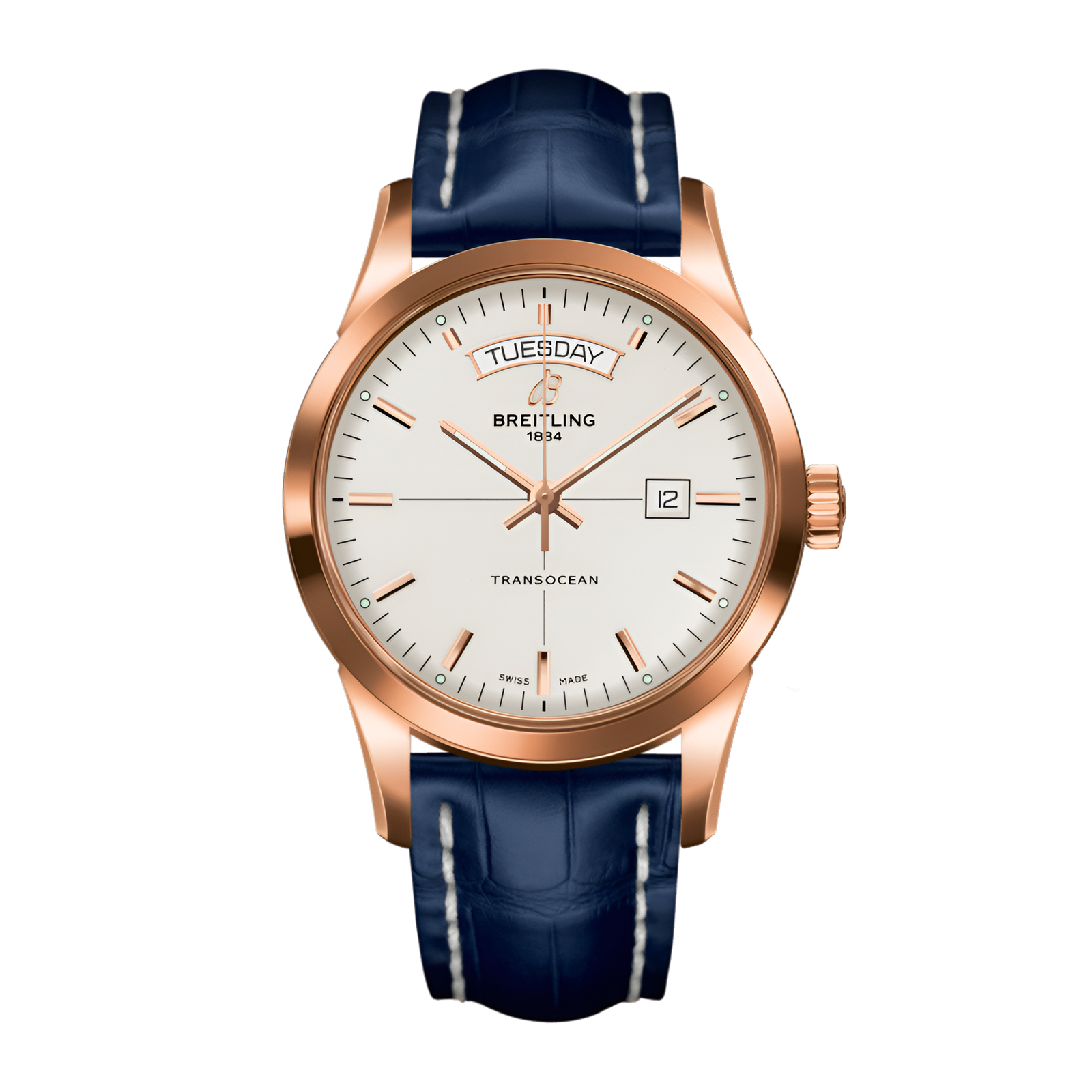Transocean Day & Date Rose Gold Silver Dial 43mm