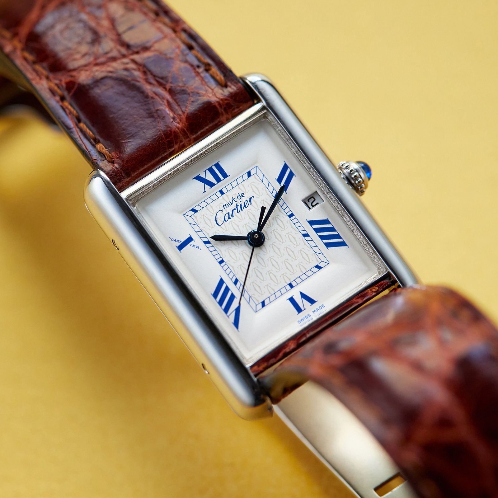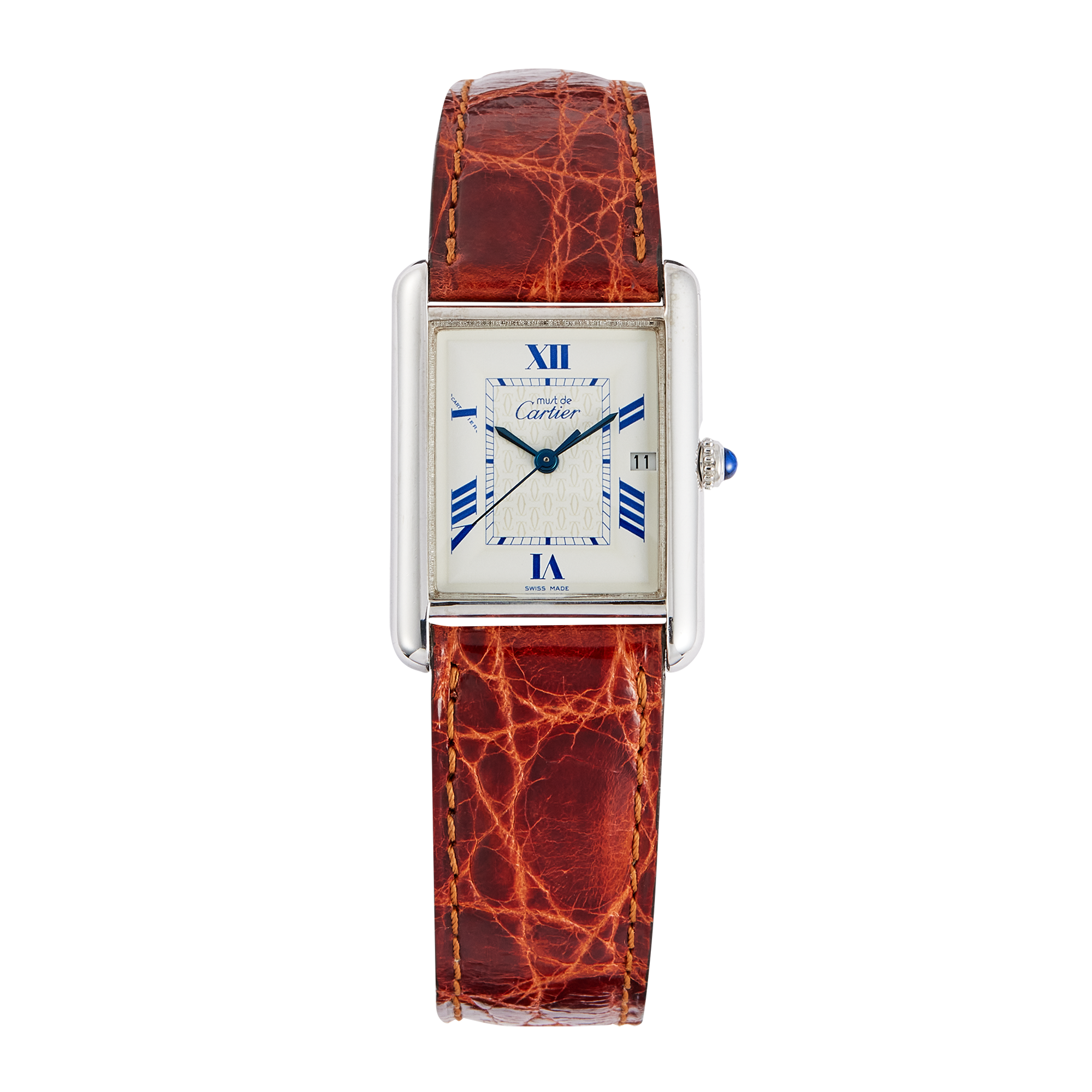 Introducing the Cartier Vintage Must de Cartier Sterling Silver White Dial 25mm ref. W1014154, a classic piece of horological craftsmanship. This elegant watch features a 25mm sterling silver case, complemented by a silver bezel that enhances its refined look. The white dial, adorned with Roman numerals, ensures easy readability, while the sapphire crystal provides protection against scratches. Powered by a reliable quartz movement, this timepiece offers precise timekeeping with minimal maintenance. The watch is fitted with a brown alligator leather strap that adds a touch of sophistication, secured with a silver folding clasp for a comfortable fit. With a water resistance of 30 meters, it is suitable for everyday wear. The Cartier Must de Cartier ref. W1014154 exemplifies the brand’s dedication to quality and style, making it an ideal choice for those who appreciate understated luxury in a compact design.Read More