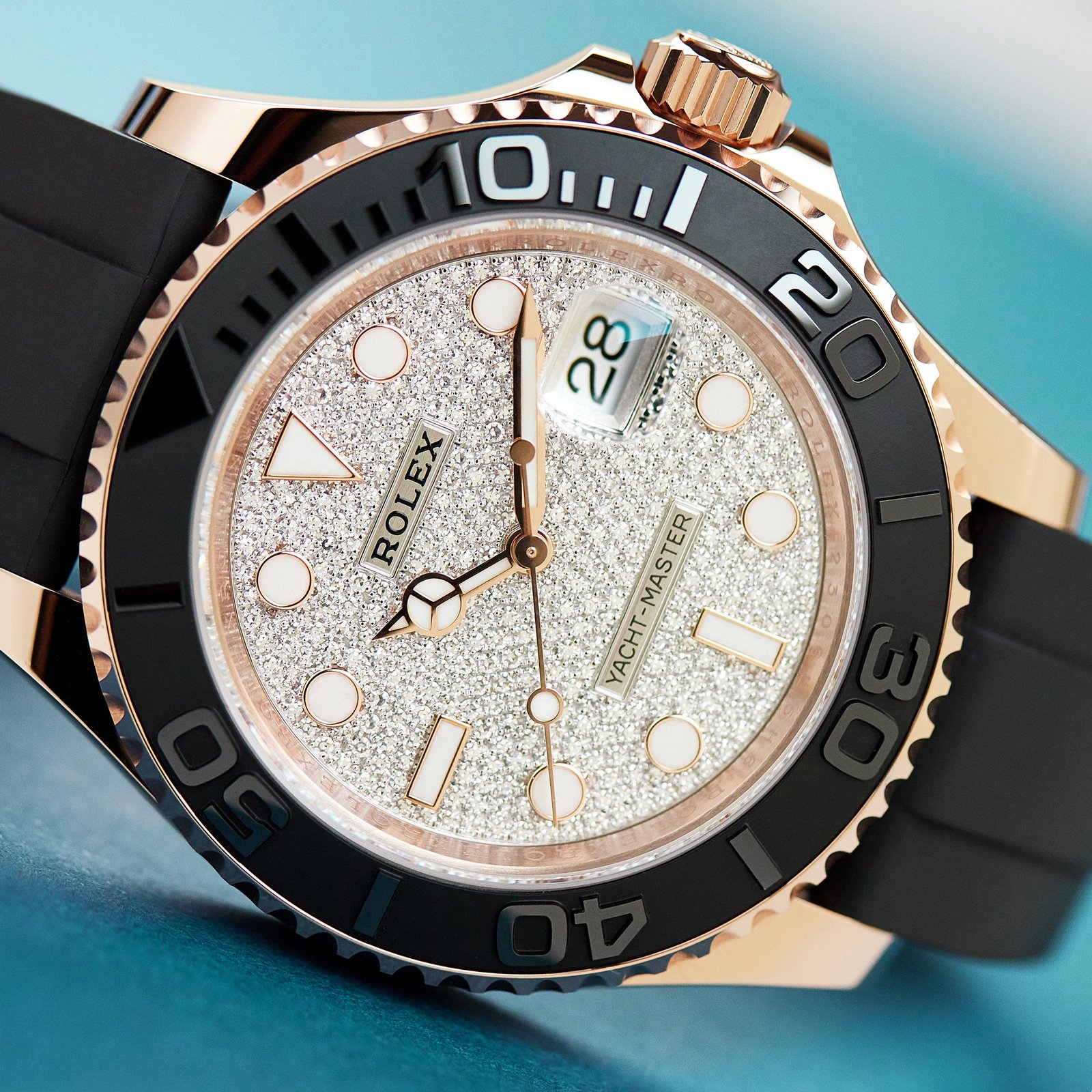 The Rolex Yacht-Master has long been a symbol of maritime elegance since its introduction in 1992. The 2019 Yacht-Master 40 in 18 kt Everose gold elevates this legacy with a stunning diamond-paved dial, making it a true masterpiece for watch enthusiasts and sailors alike. The dazzling diamond dial showcases Rolex’s expertise in gem-setting, where each stone is meticulously placed by skilled artisans to ensure optimal brilliance and alignment. This watch not only shines but also features a bidirectional rotatable bezel, allowing wearers to easily calculate sailing times between buoys a vital tool for any nautical adventure. Crafted with a self-winding Calibre 3235 movement, the Yacht-Master offers a robust 70-hour power reserve and water resistance up to 100 meters, making it perfect for both luxury outings and water sports. The innovative Oysterflex bracelet, made from durable black elastomer and fitted with an 18 kt Everose gold clasp, combines comfort and style seamlessly. Whether you’re navigating the seas or attending a high-profile event, the Rolex Yacht-Master Rose Gold Oysterflex Pavé Dial is a sophisticated companion that embodies the spirit of adventure and elegance.Read More