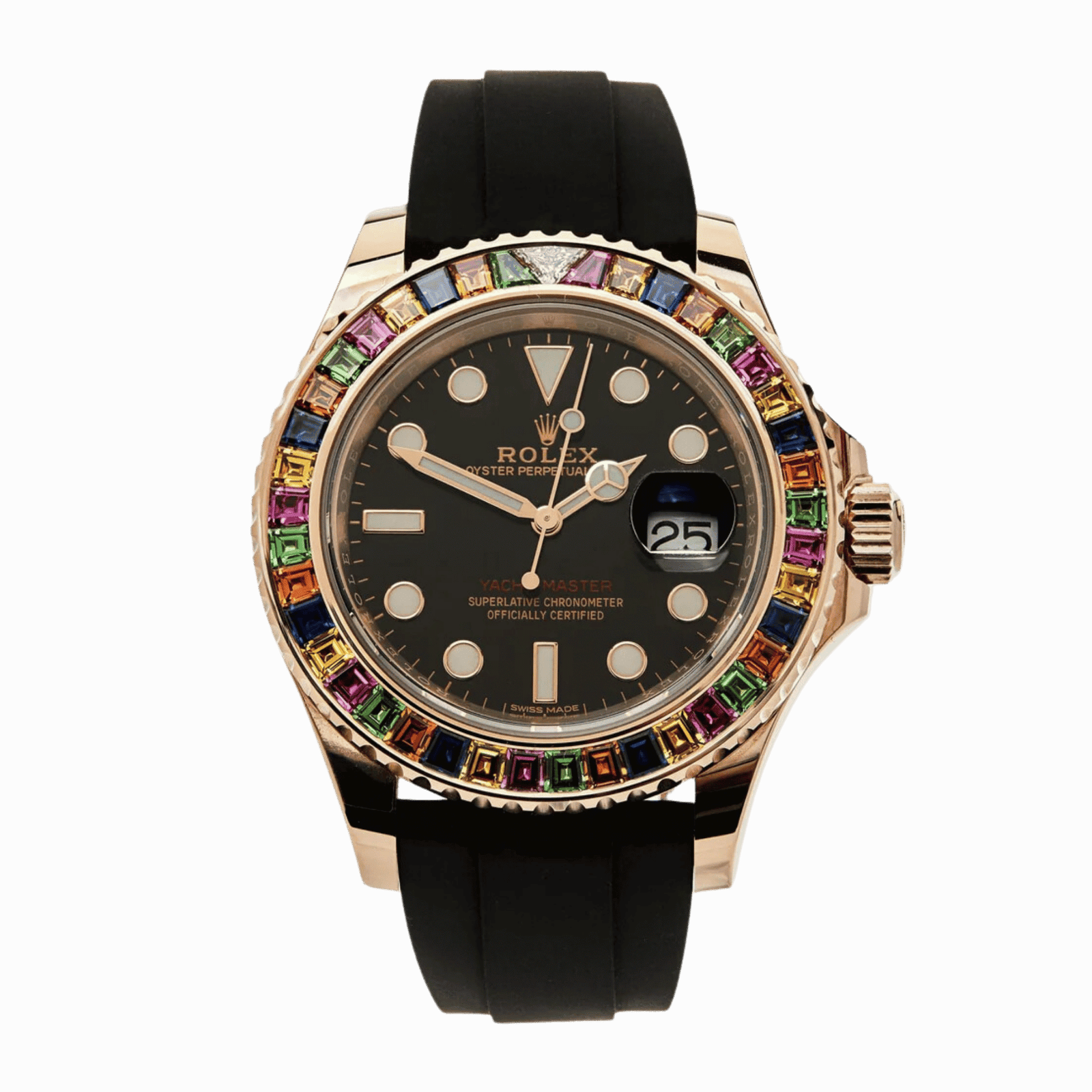 Yacht-Master Rose Gold Rainbow Sapphire Black Dial 40mm